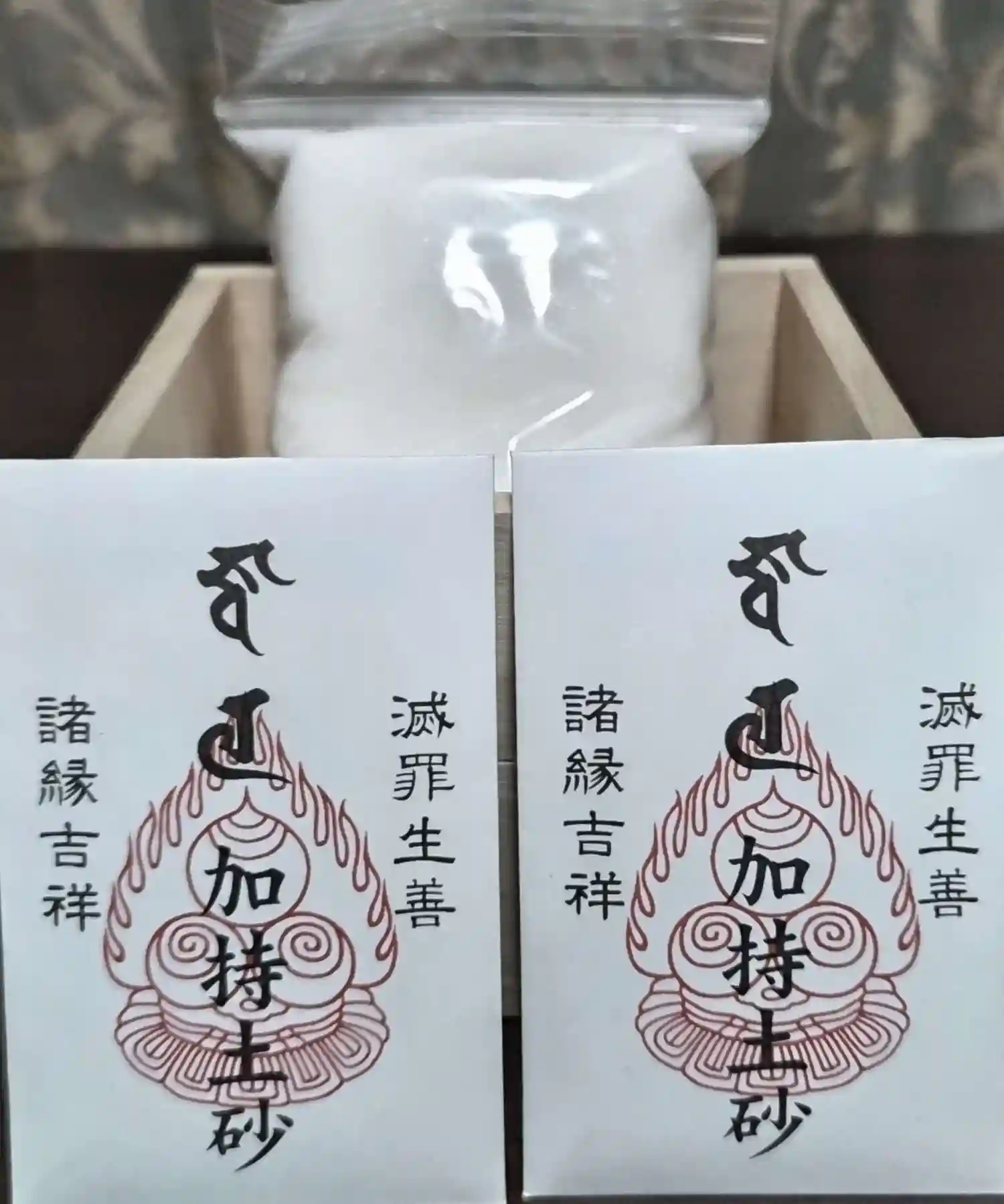 人気の浄め塩と加持土砂。盛塩やお墓などに良いです。今日は購入した方が多かったです。