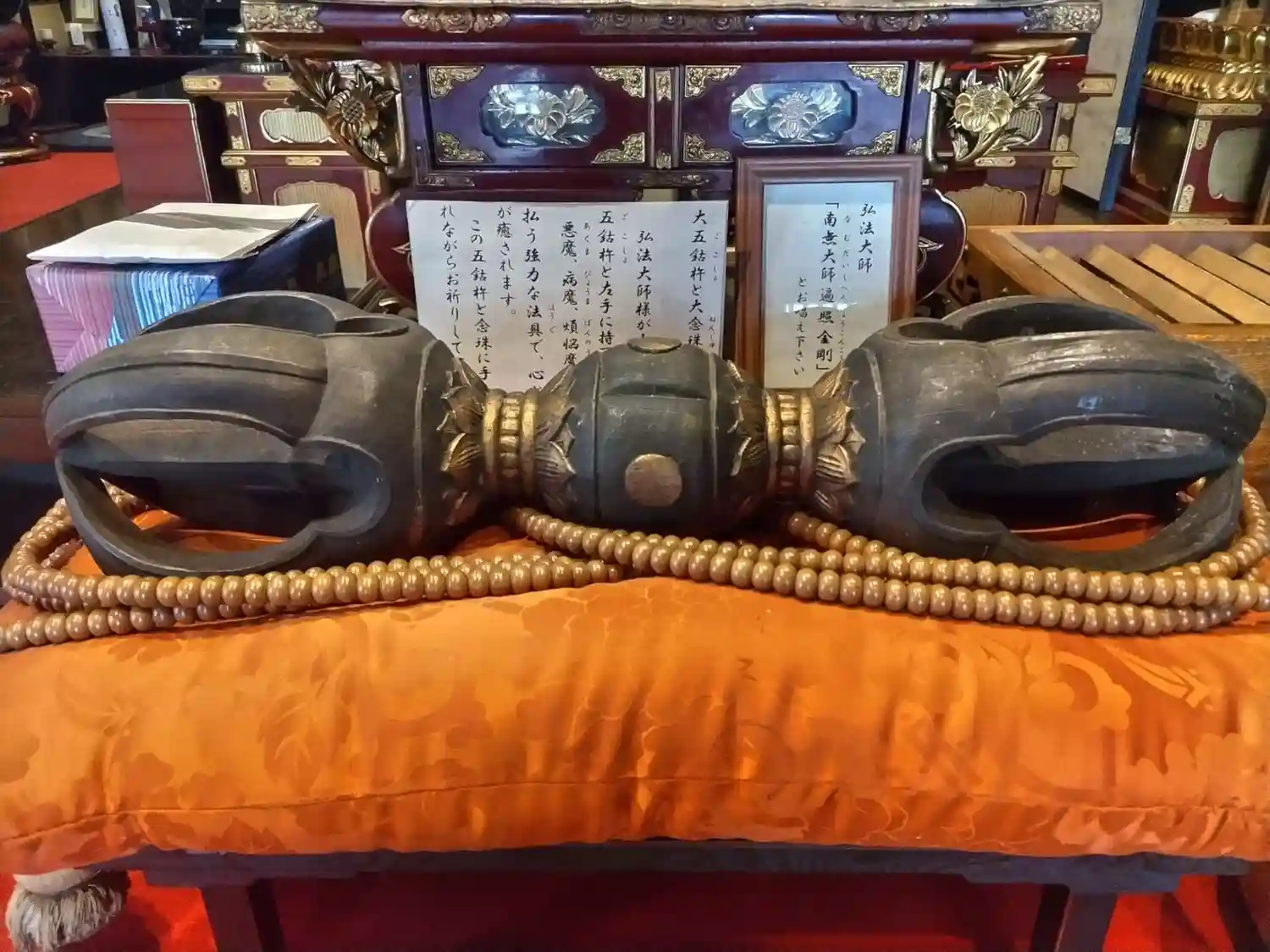 今日は60センチの大きな五鈷杵と大きな数珠に触れることができます