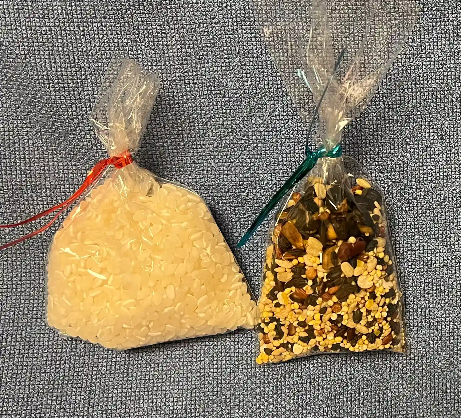 仏様にお供えした生米と十六穀米。お護摩参列者に差し上げております。