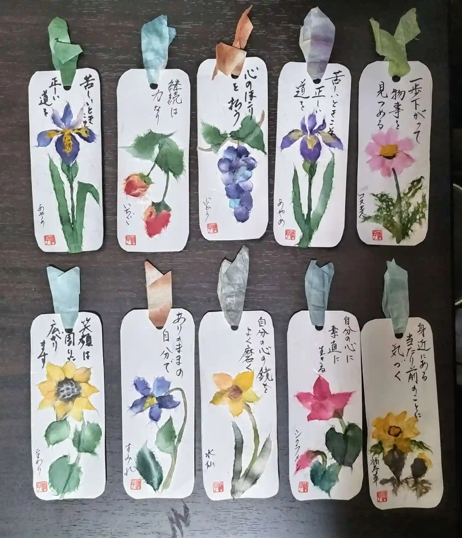 手作りの押し花しおりです。