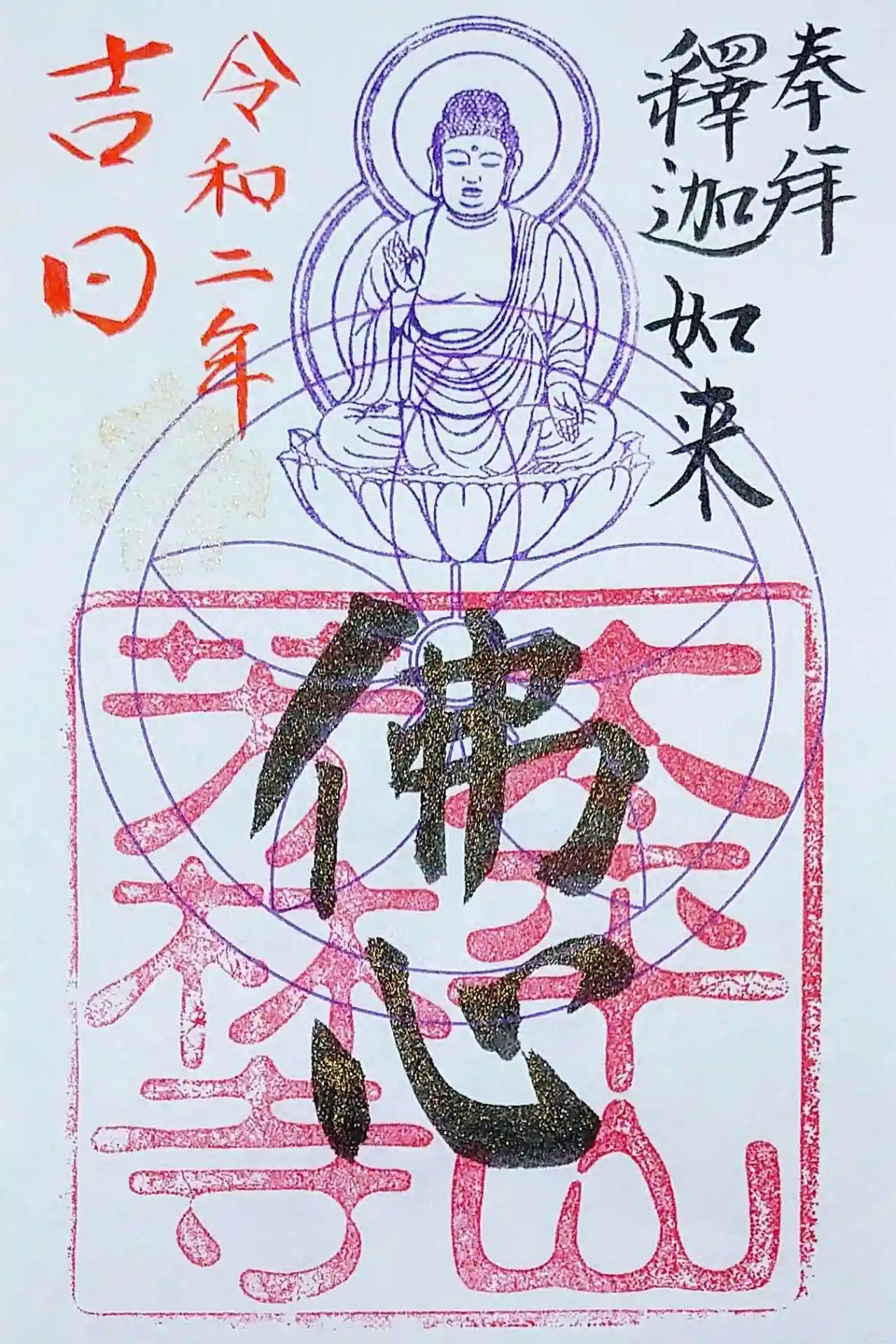 御朱印は2種類あり、まずはご本尊の釈迦如来のお姿印が入ったもの。