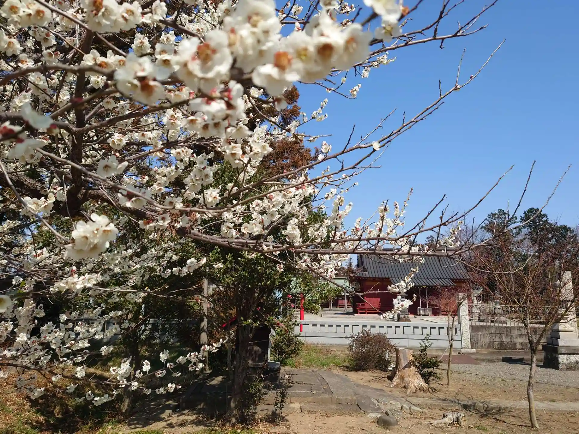 稲荷社横の梅も満開でした