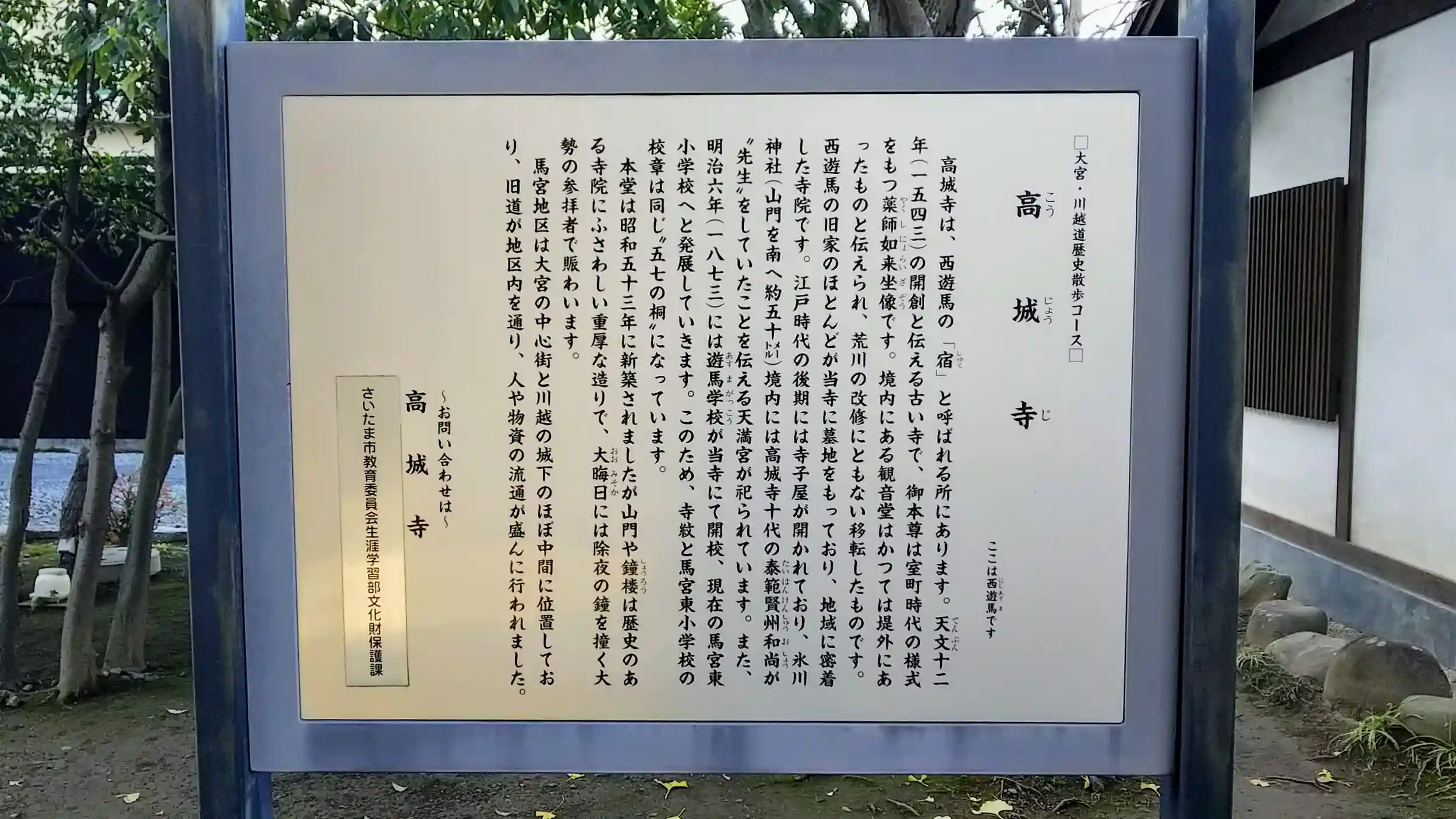 天文12年(1543年)創建。正式名称は遊馬山高城寺です。山門と鐘楼門が立派でした。駐車場と駐輪場があります。