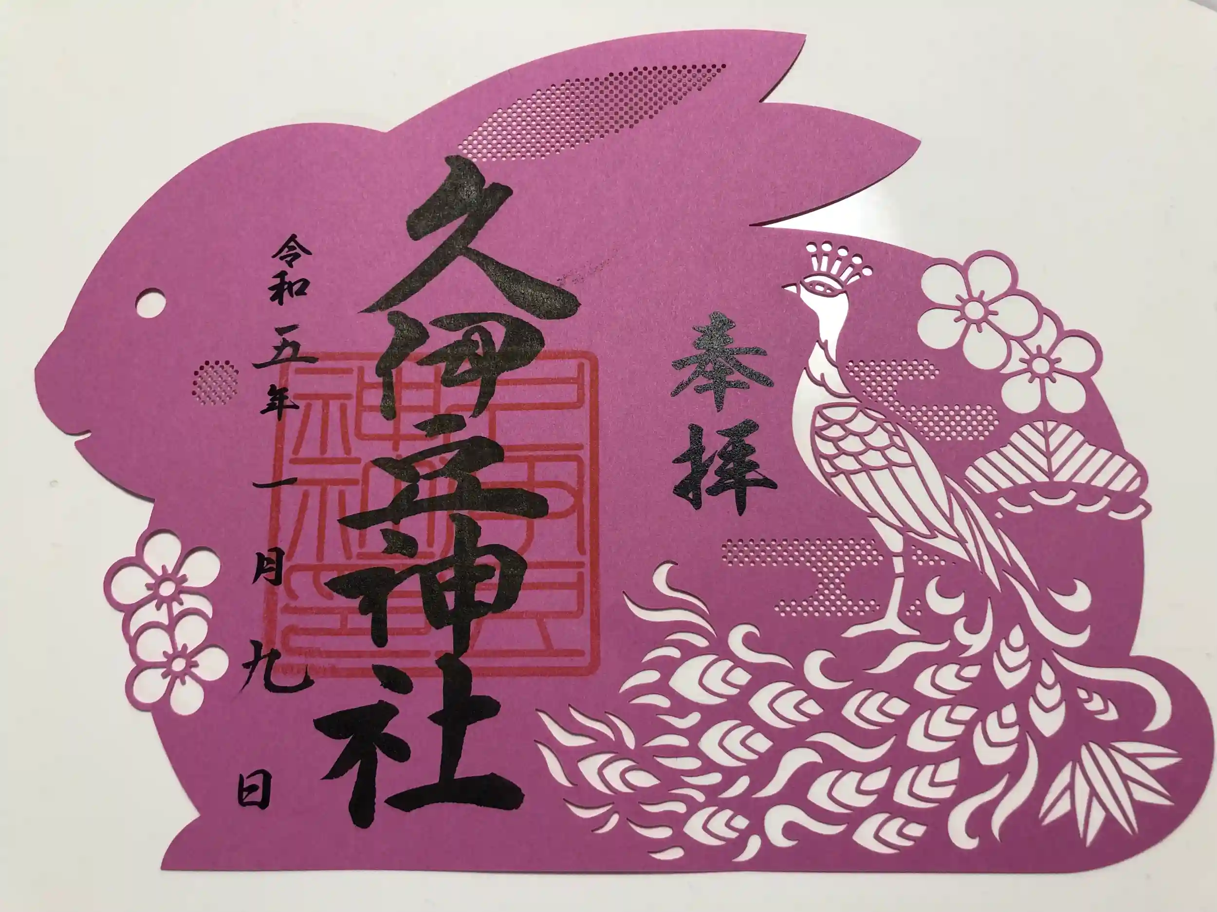 三が日の切り絵御朱印(兎と孔雀)