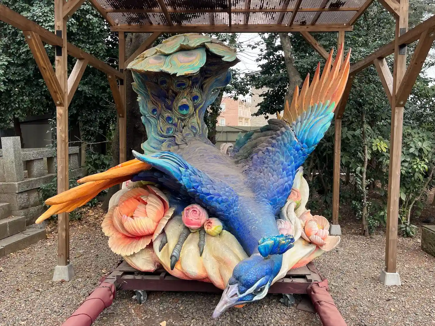 境内には孔雀が飼われていました。その孔雀の先祖は昭和十三年に朝香宮鳩彦王殿下が岩槻に来られた折、久伊豆神社に下賜された宮家ゆかりの孔雀だそうです。