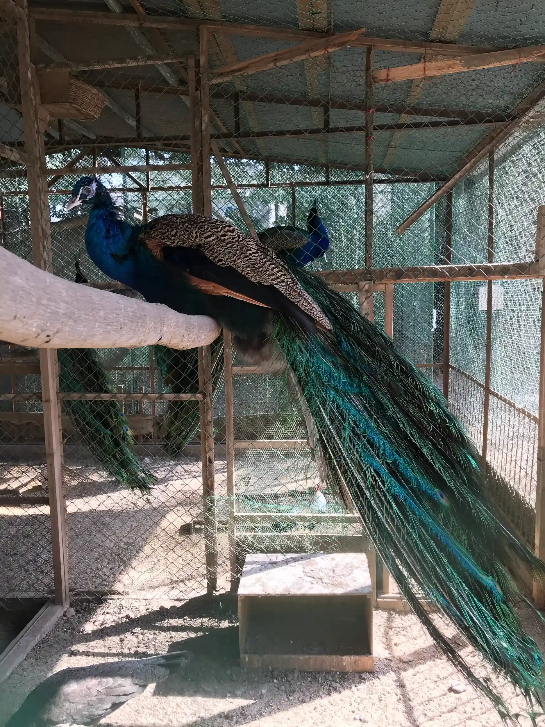 大きな孔雀が居ました。ニワトリも放飼されていました。
