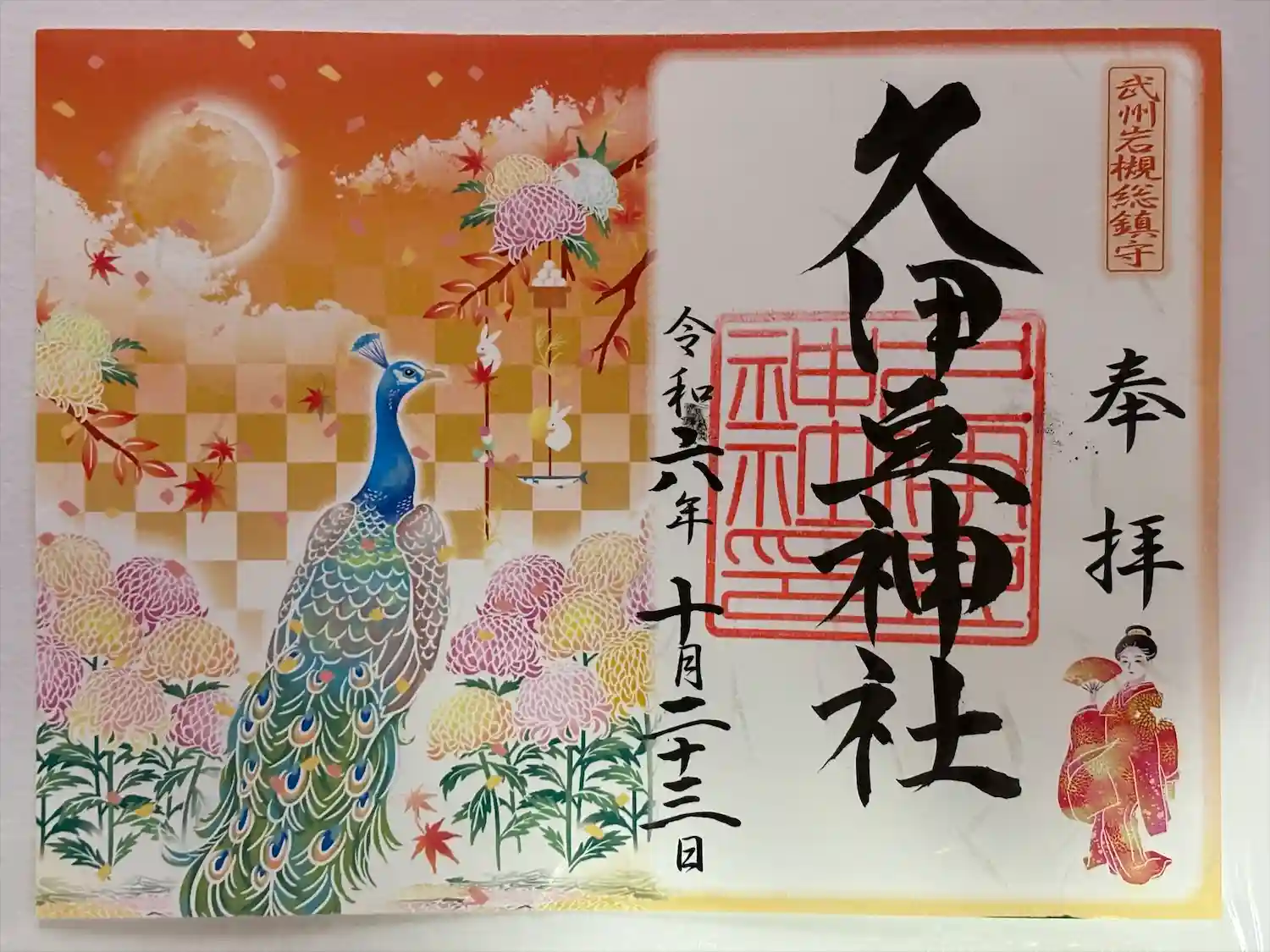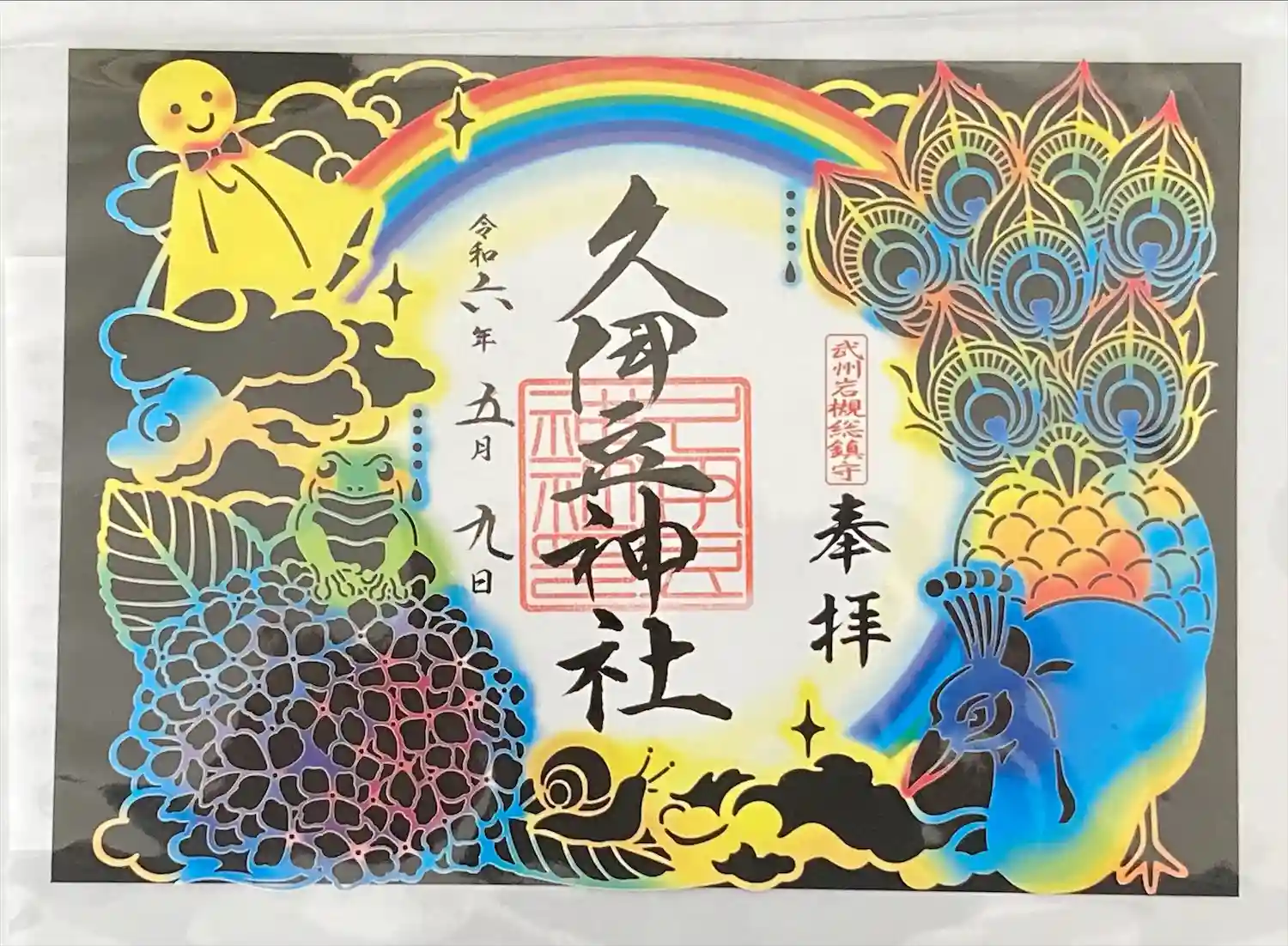 通常の御朱印。9日はクジャク印が羽を広げたバージョンだそうです。