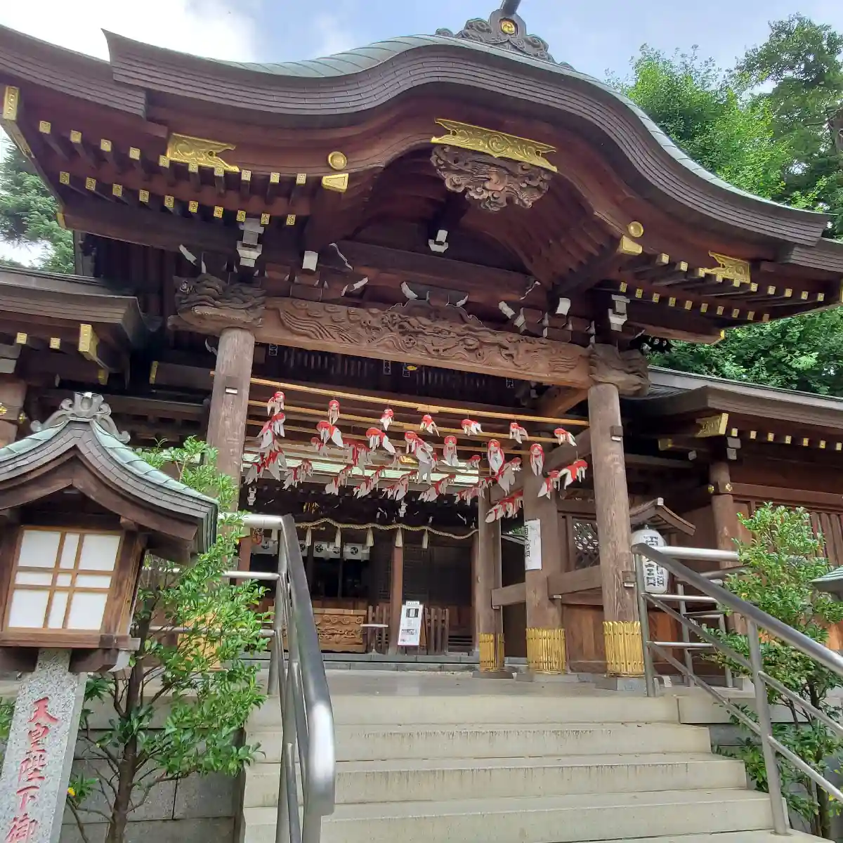 夏祭りの準備か、お神輿が何体か飾ってありました。