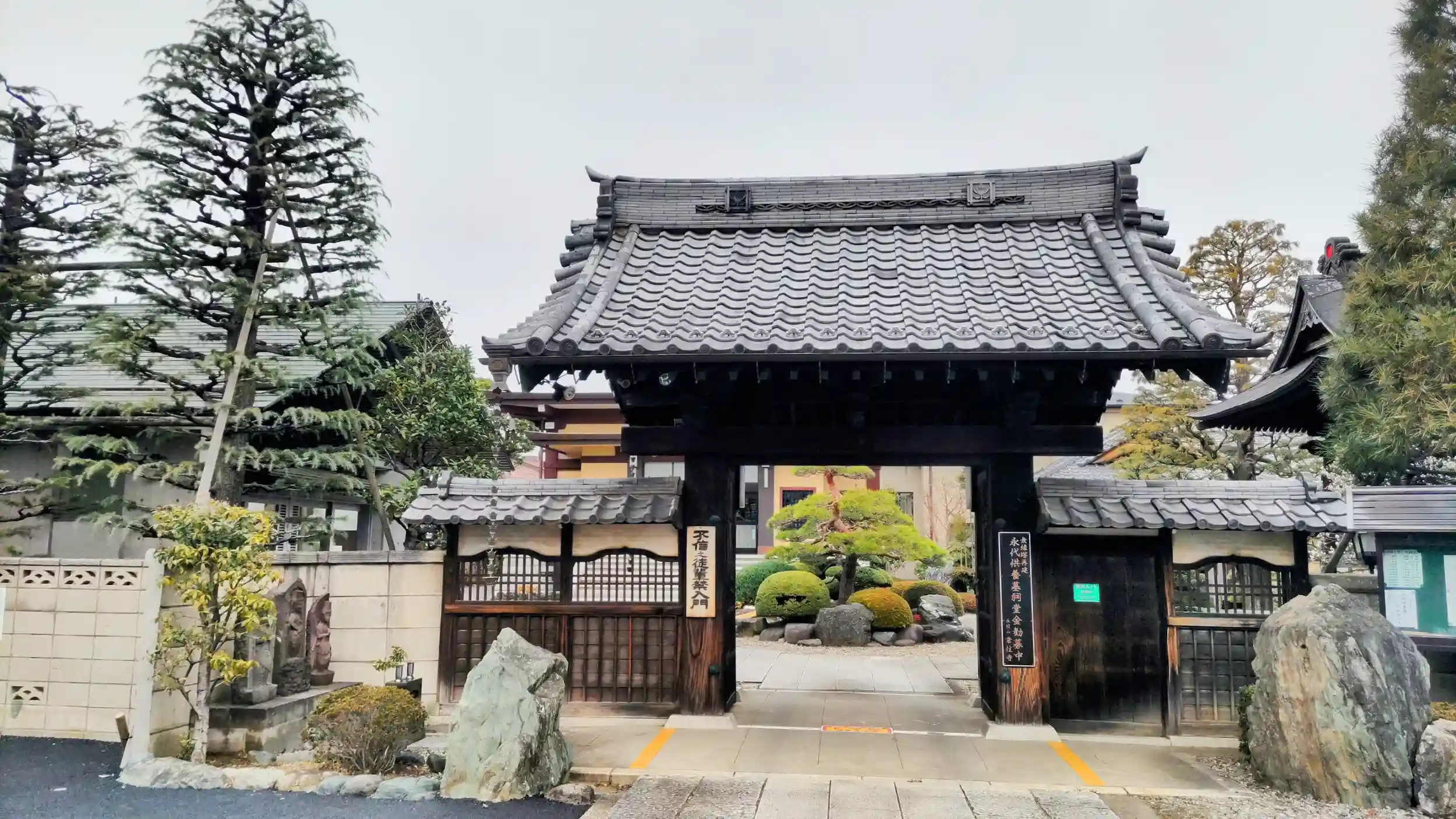 山門手前の左右が駐車場になっているほか、山門をくぐって本堂裏手に大きな駐車場があります。