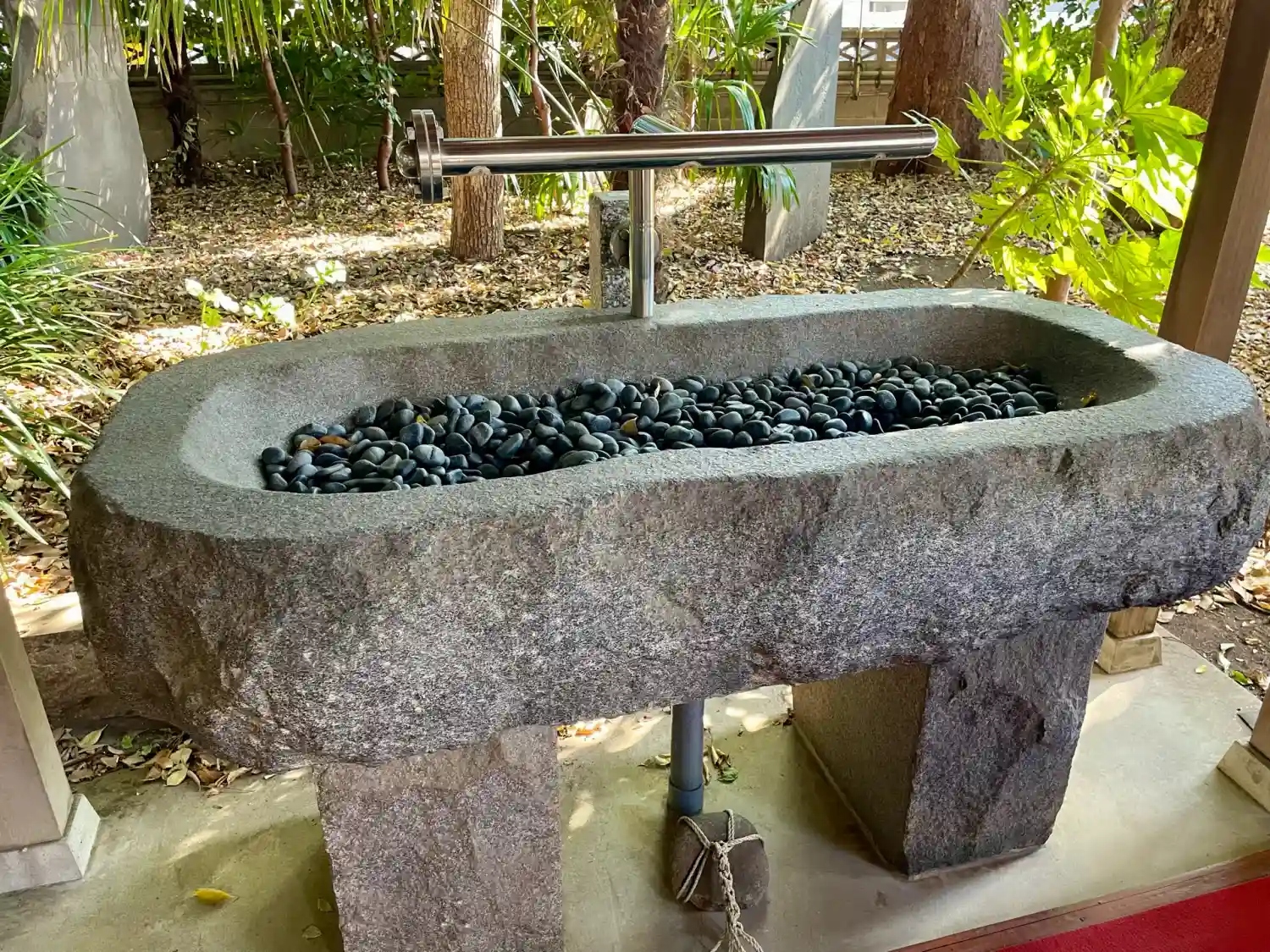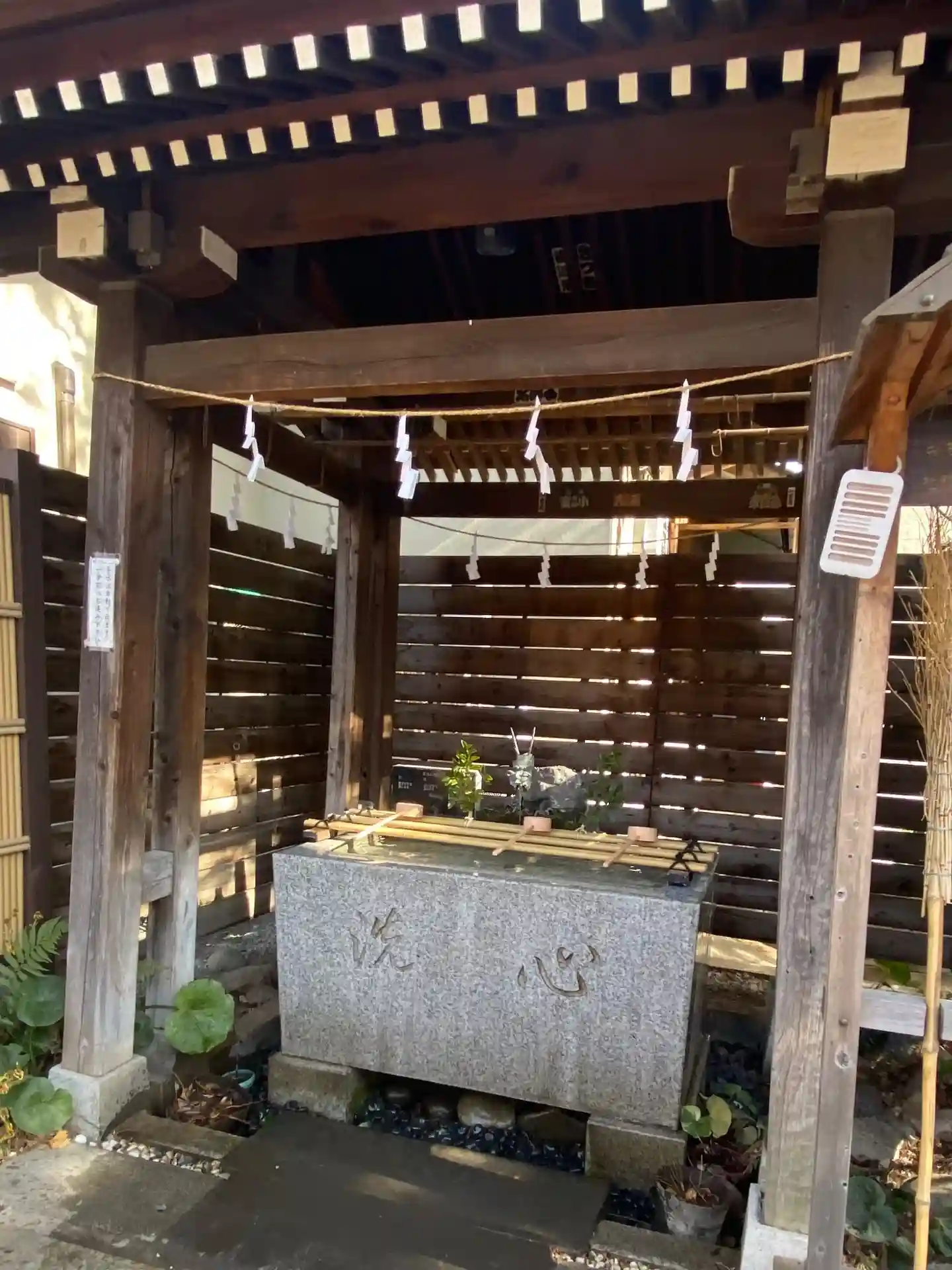 手水舎の花や社内に咲いている花もと…