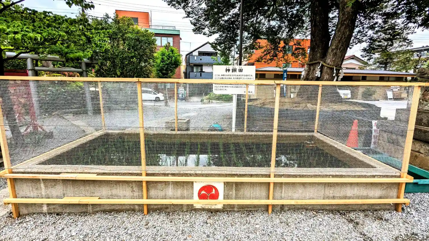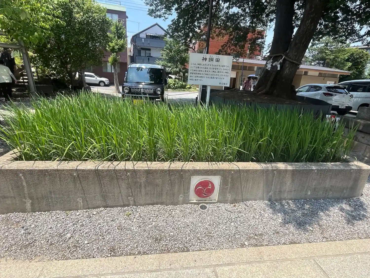 参道左側の<神饌田(しんせんでん)>。小さな区画に稲を少量植えてあるのはよく見掛けるが、こんなにたくさん植えてあるのは自分は見たことがない。日本古来の伝統文化の継承の点で非常に良いと思う。