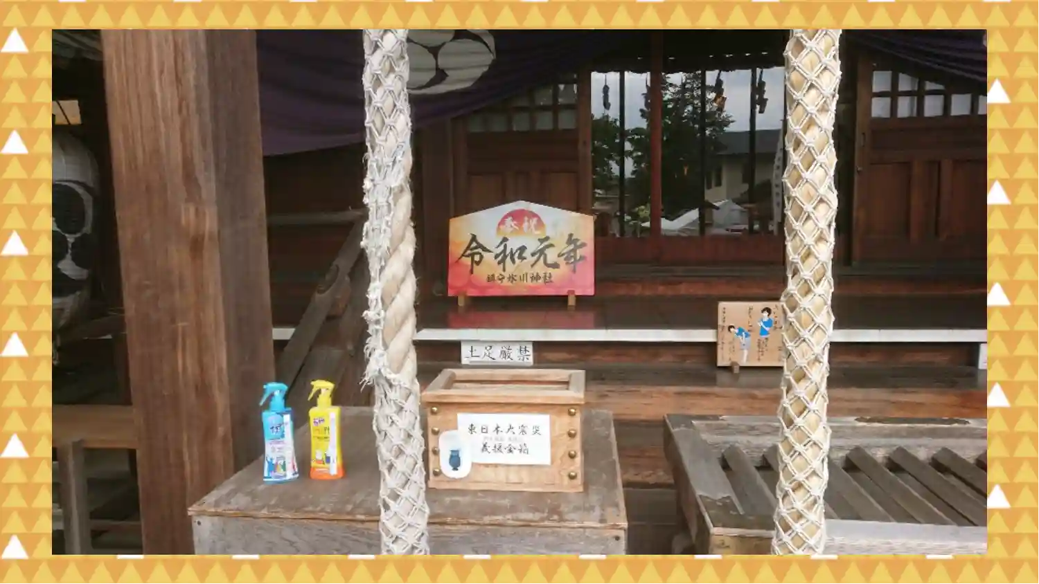 拝殿に虫除けスプレーが備え付けられていました。私が訪れた時は蚊はいませんでした。