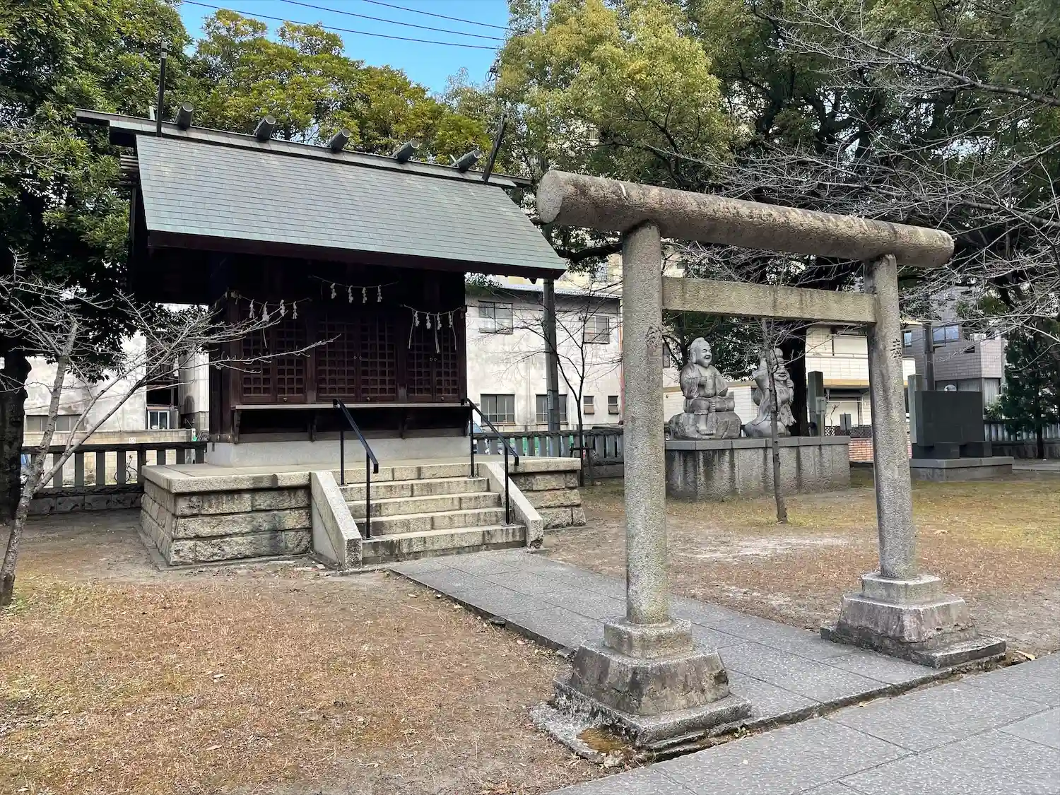 川口神社の境内地に鎮座し、旧金山社(金山権現社)の社殿を本殿とし、須佐之男命を祀る。