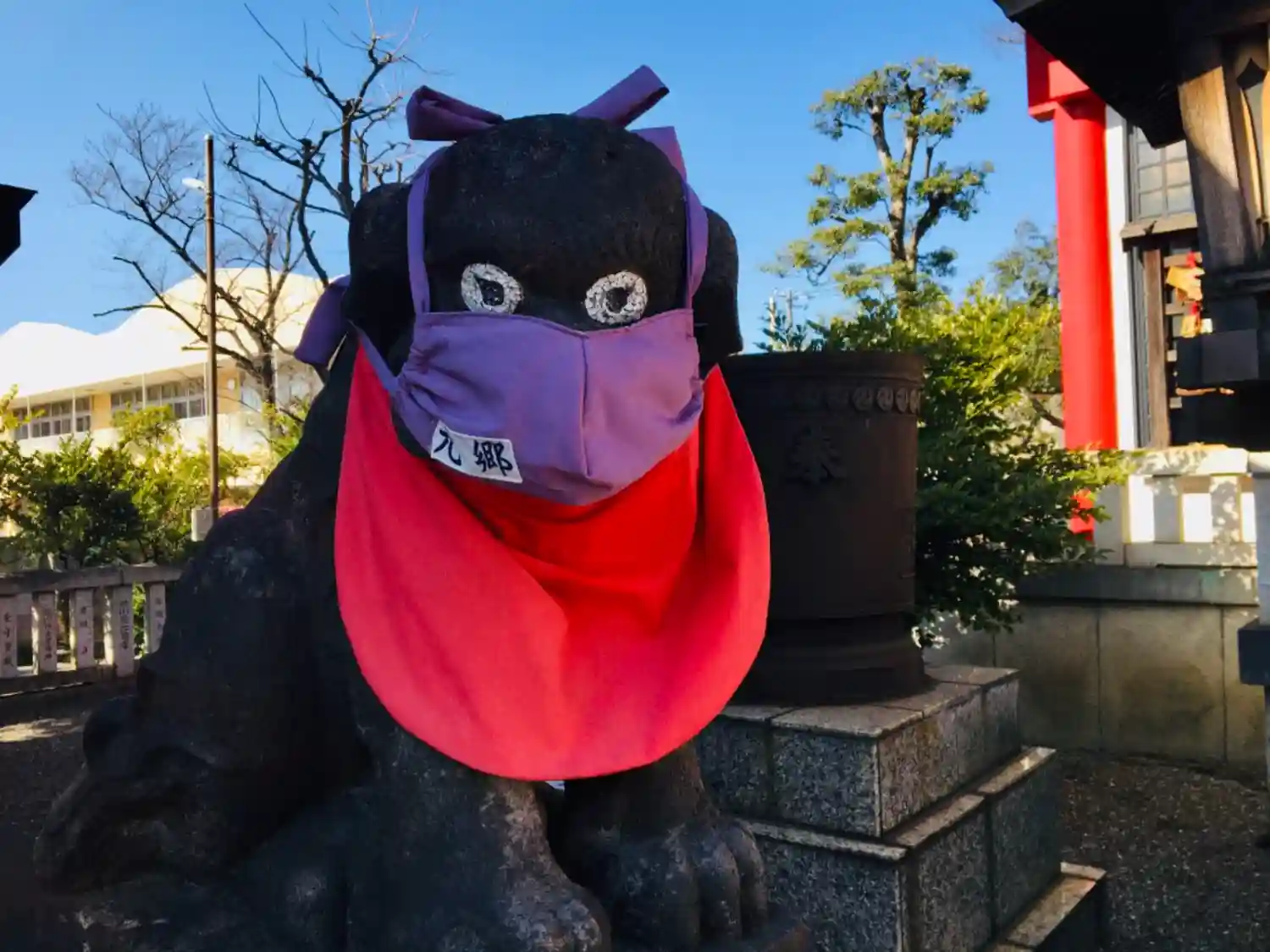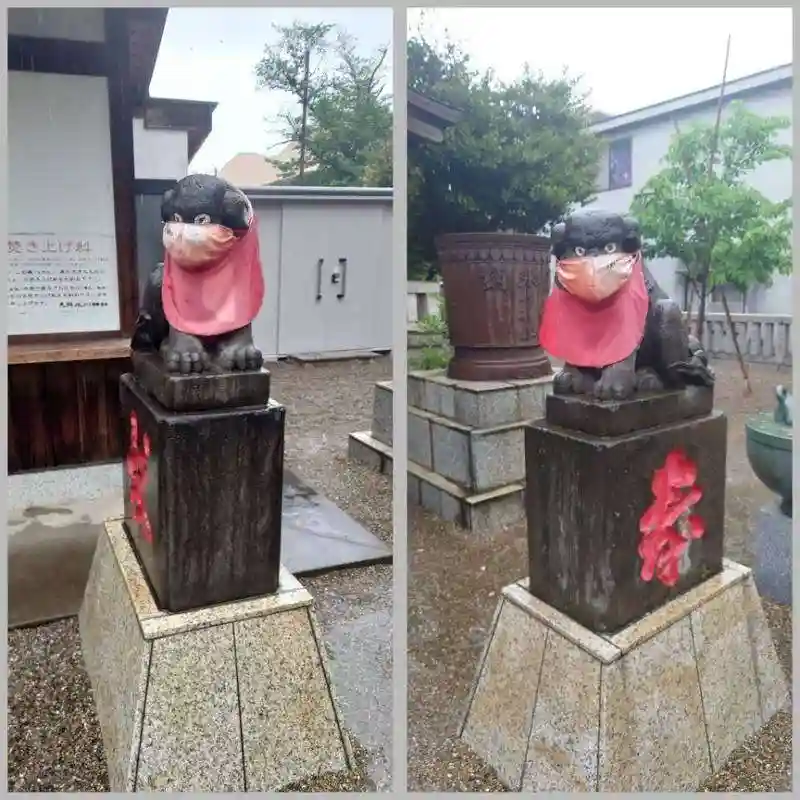 狛犬、マスクをしています。