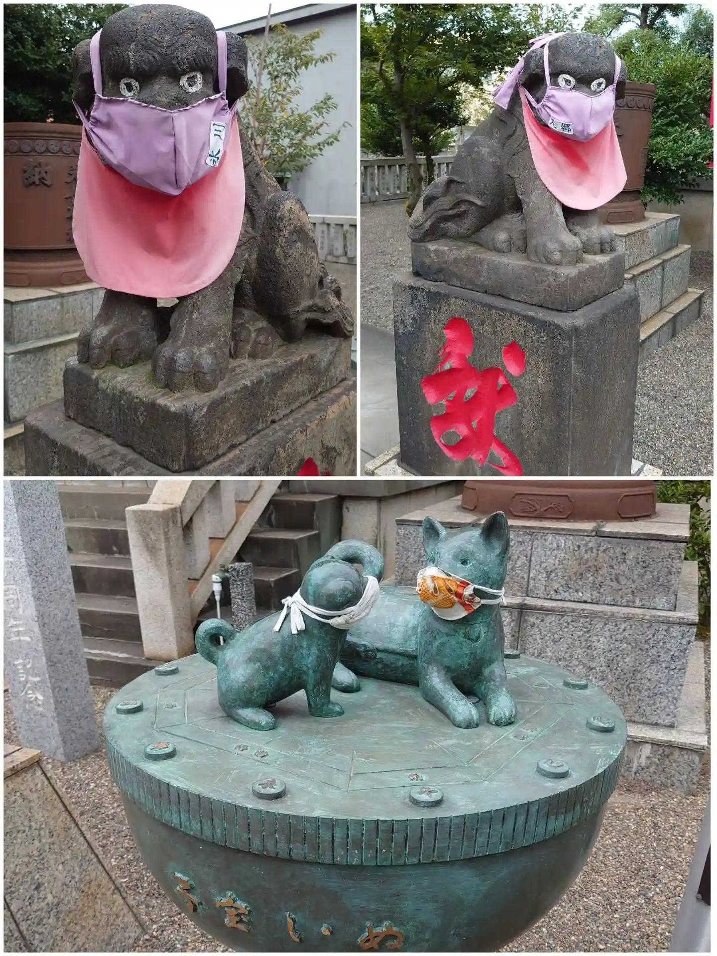 狛犬も子宝犬も感染対策ばっちりです。