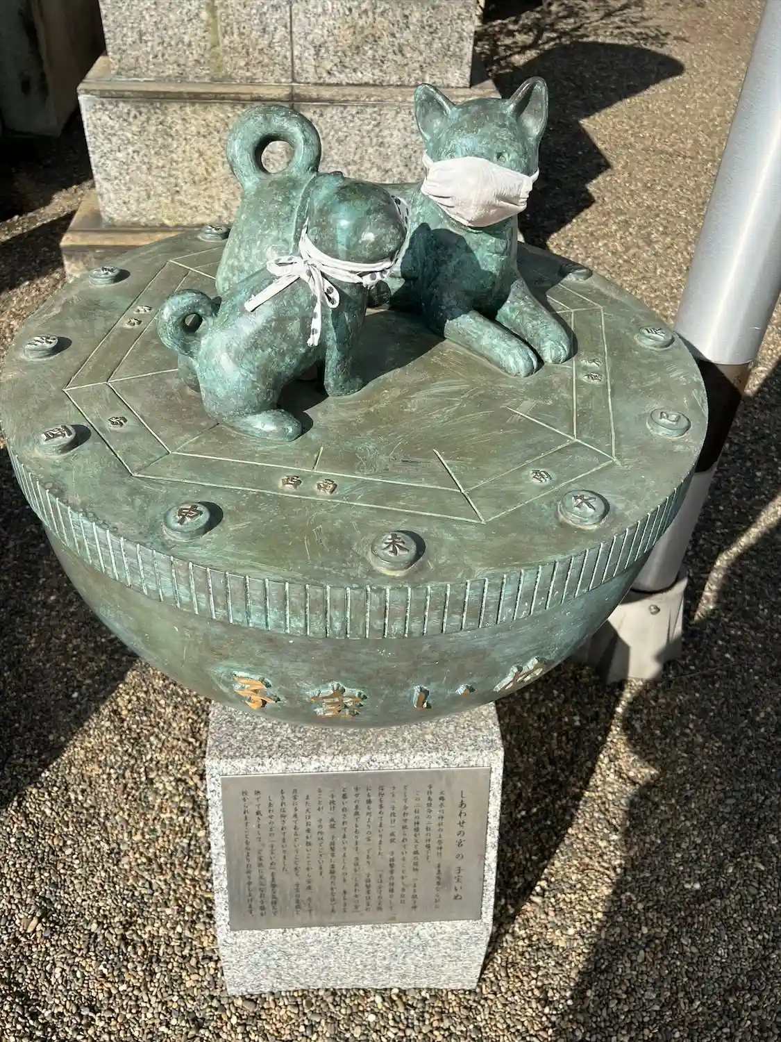 先日の子宝いぬに続き、同じ方より狛犬にもマスクのご奉納がございました。
