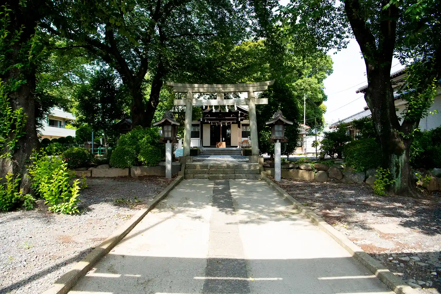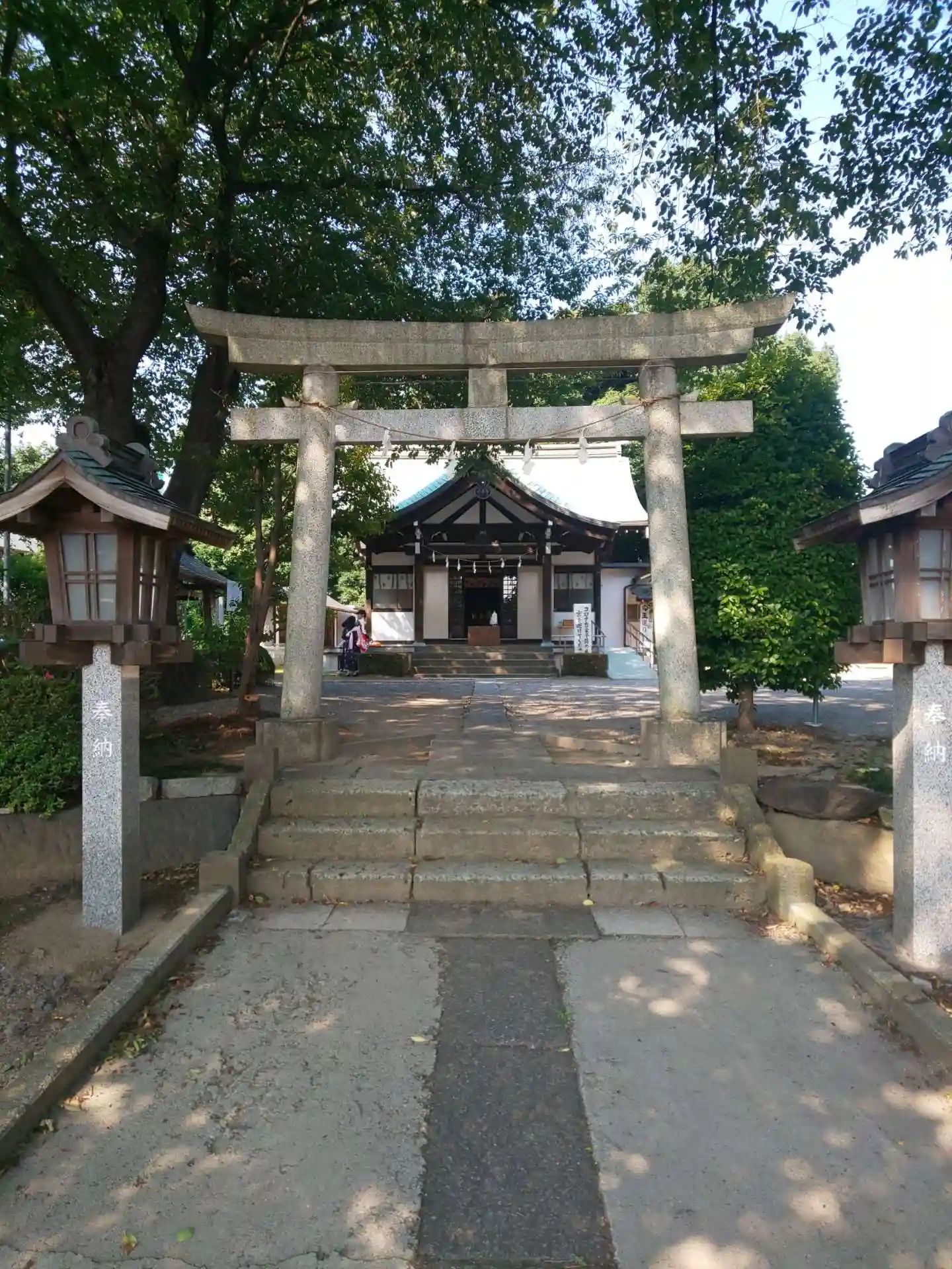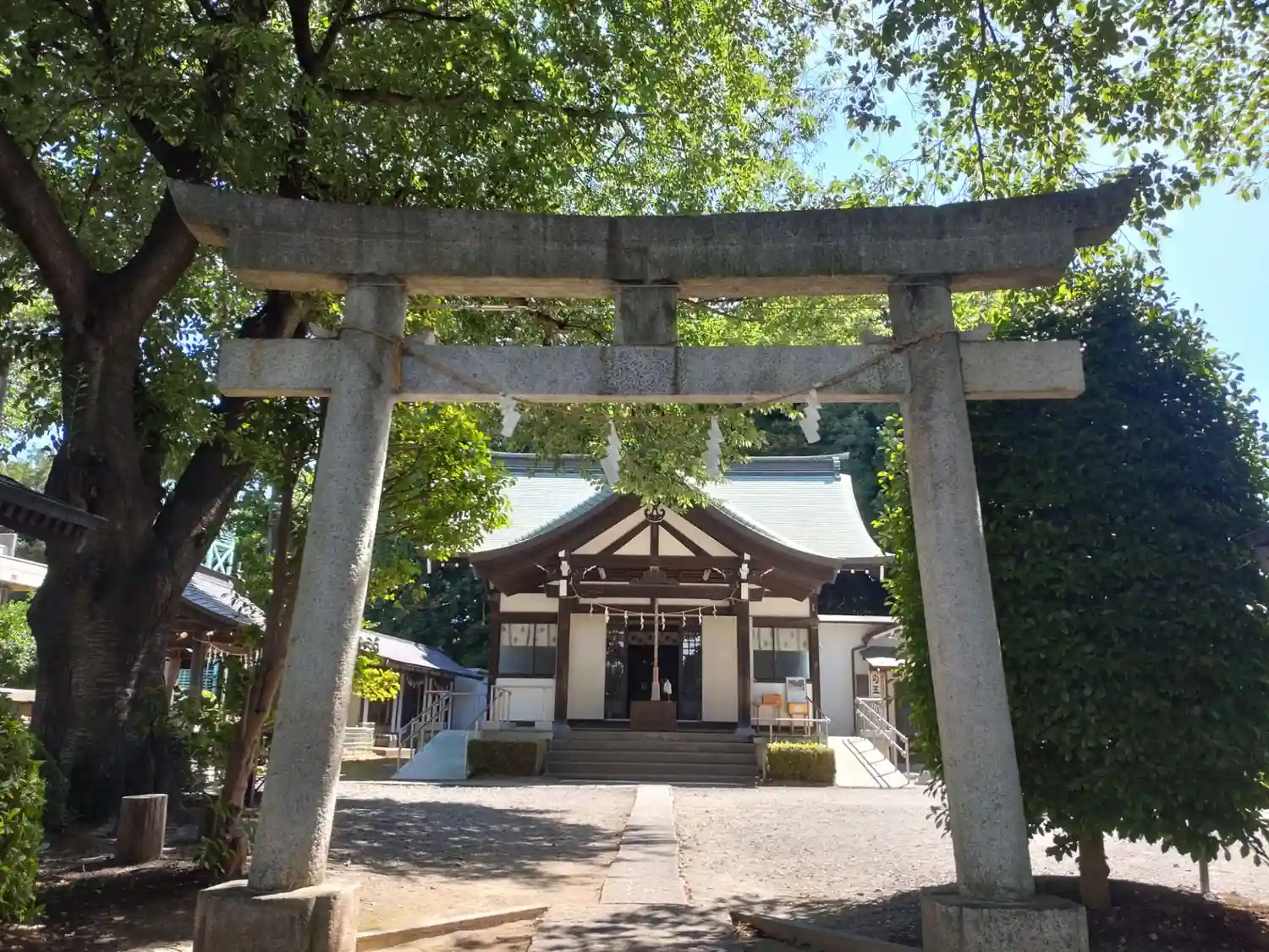 広々とした境内には葉桜の木がたくさんでした。