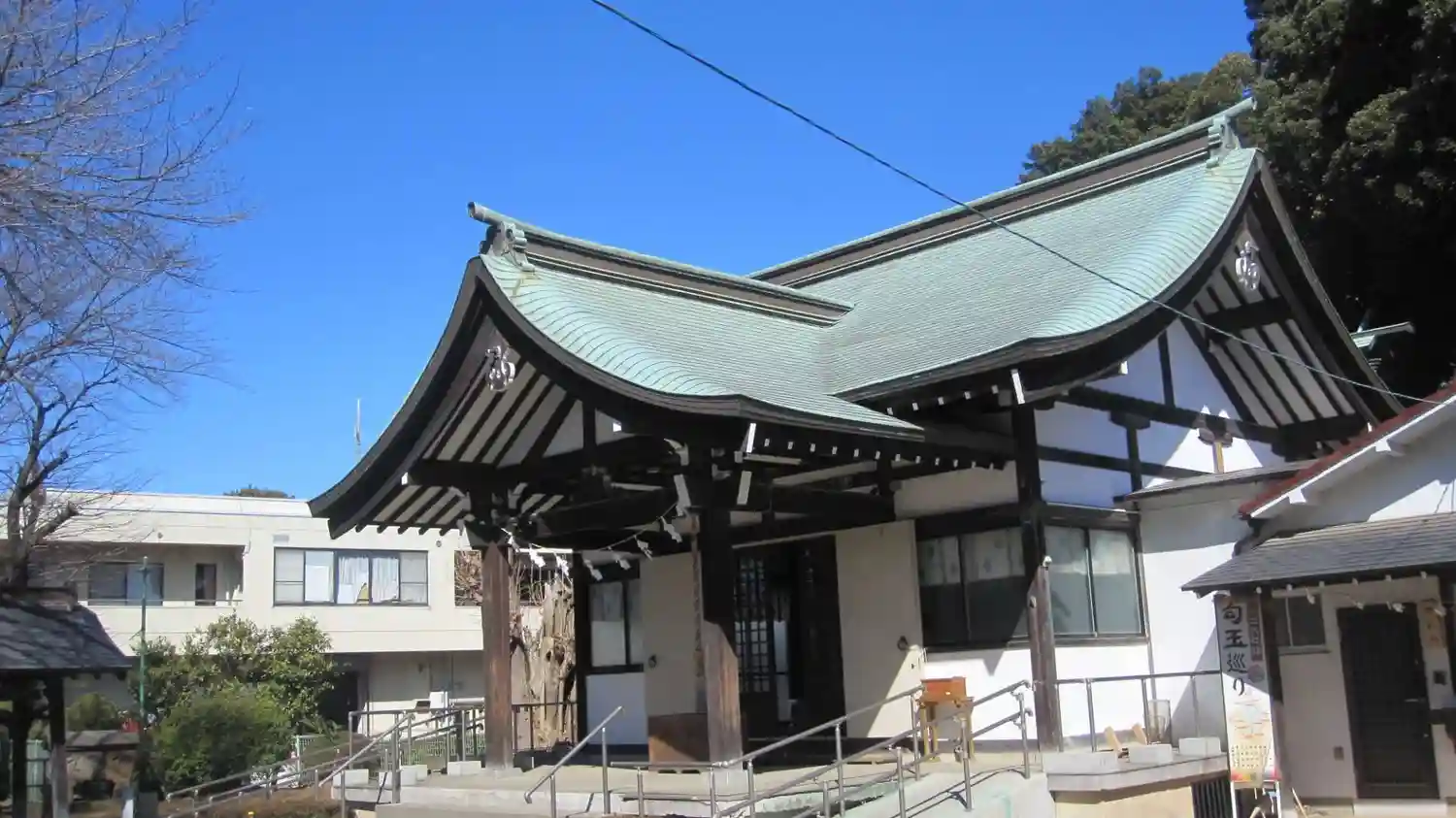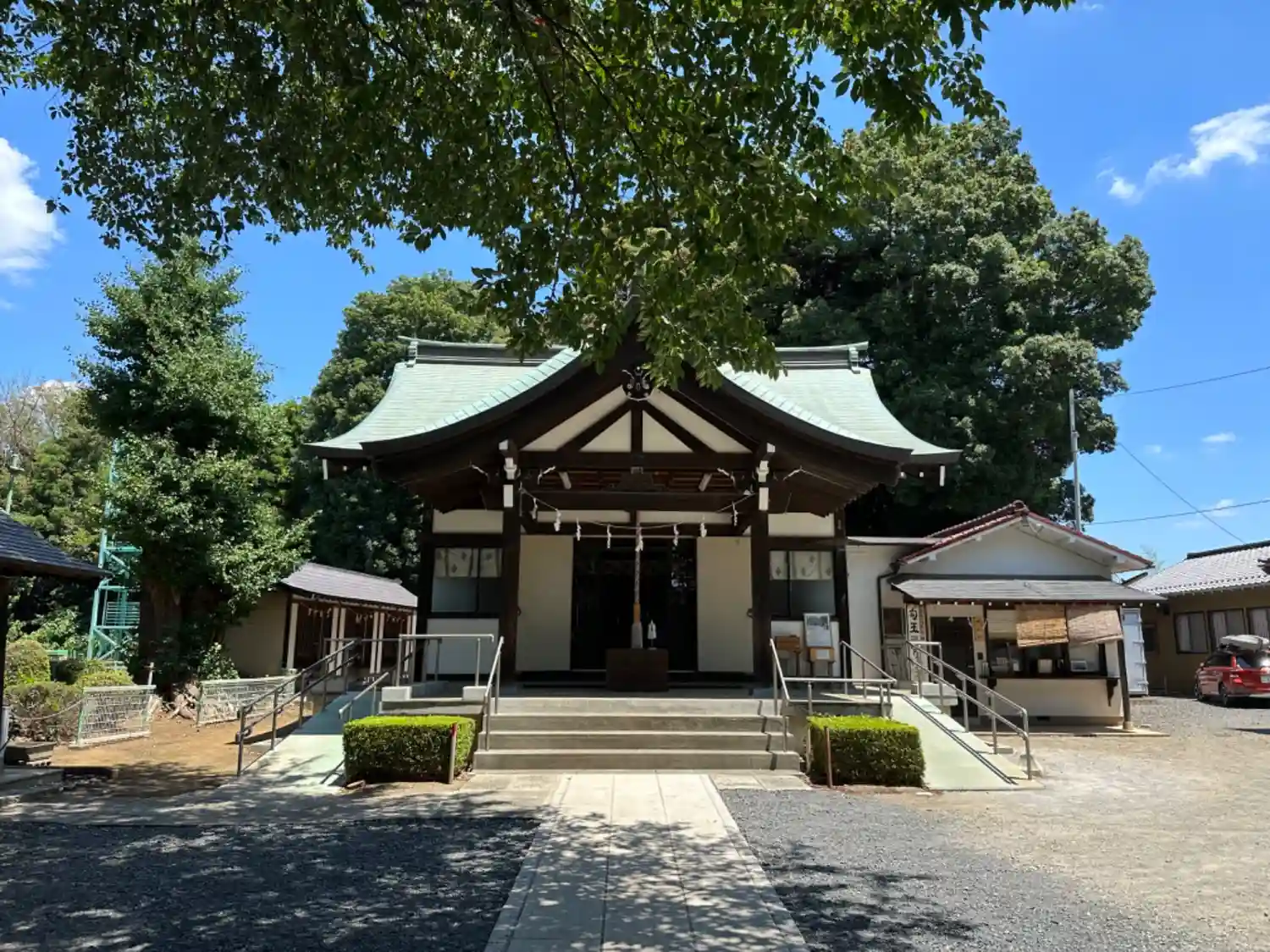 <拝殿>全景。小ぢんまりしたサイズ。新しそう。