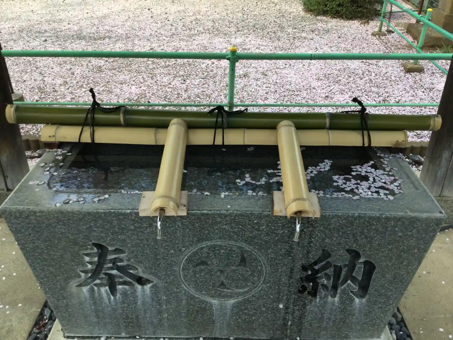 手水舎が散った桜で