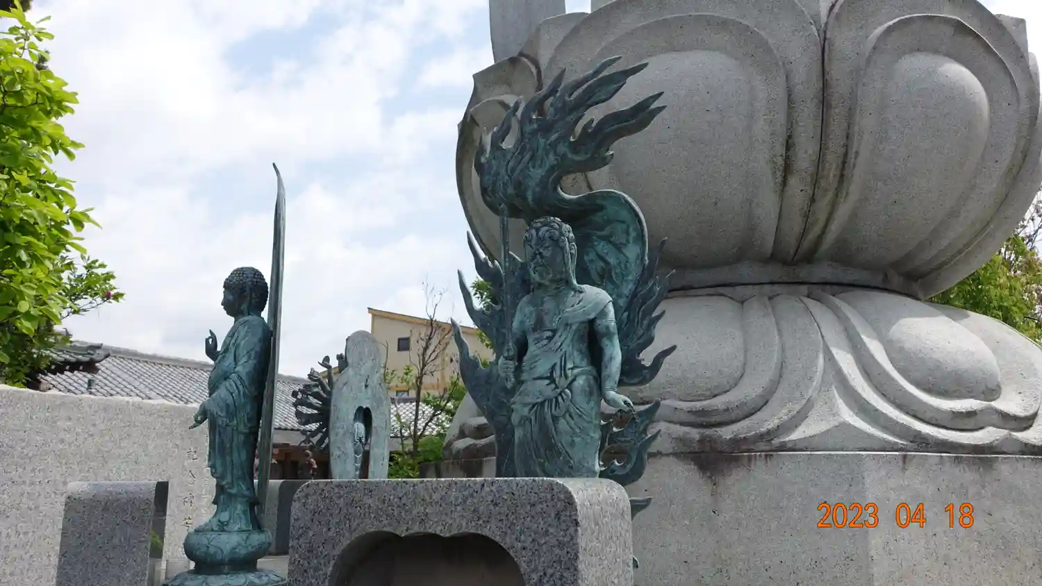 山門から広い境内まで仏像がたくさんありました。