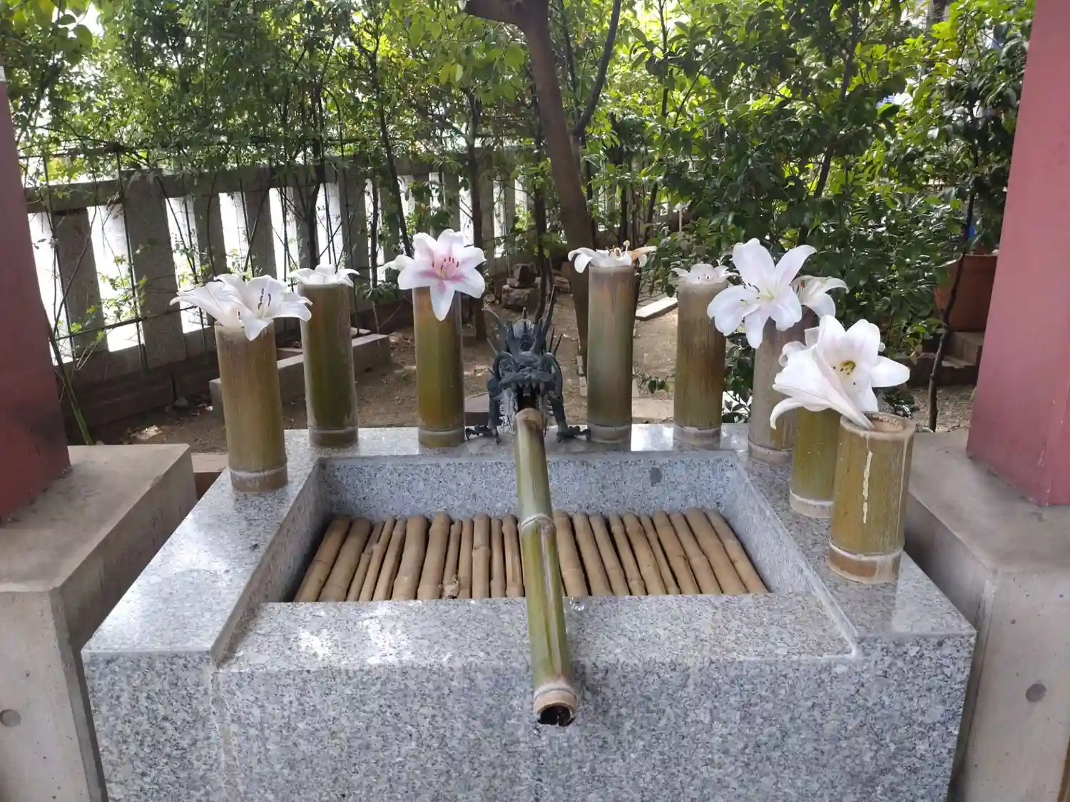 手水舎には、百合の花が飾られとても良い香りがしま…