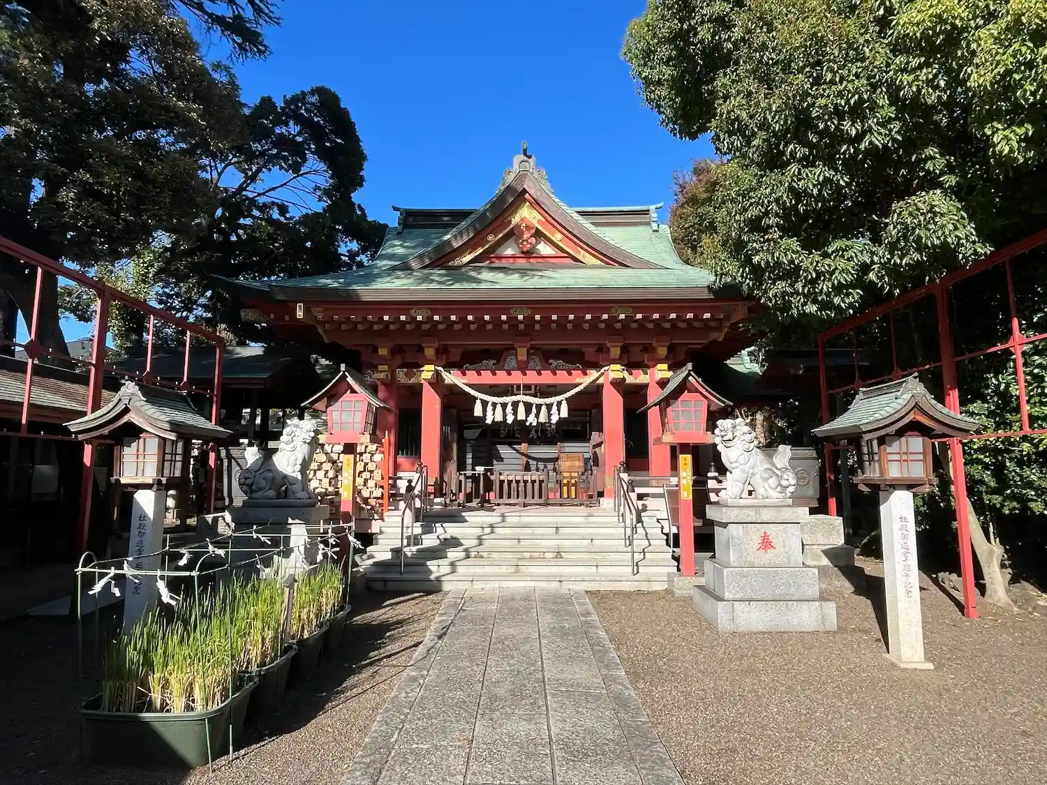 大きな神社ではありませんが、鳥居越しに参道が一直線に伸び、奥に拝殿がある姿が素敵ですね。