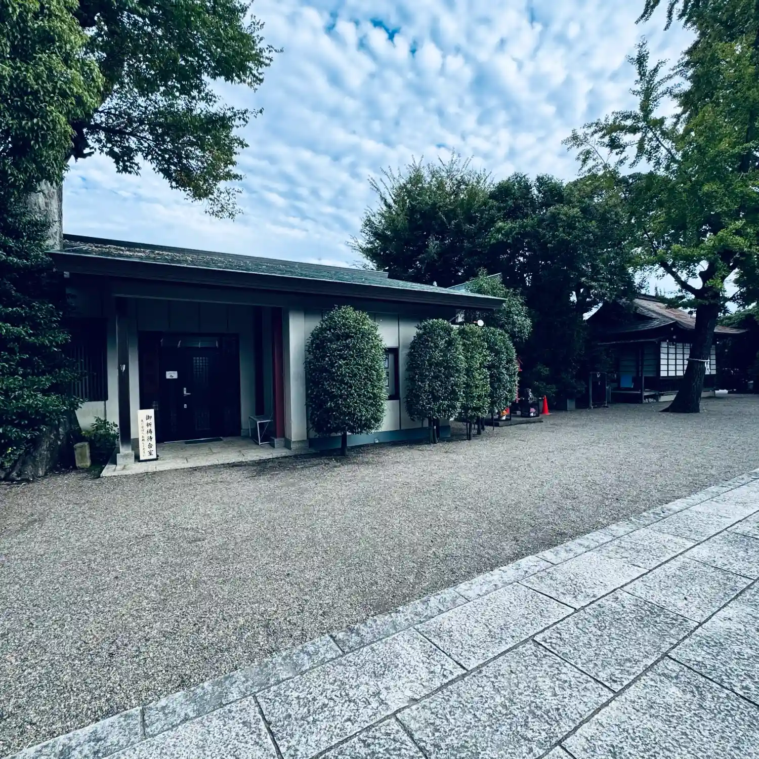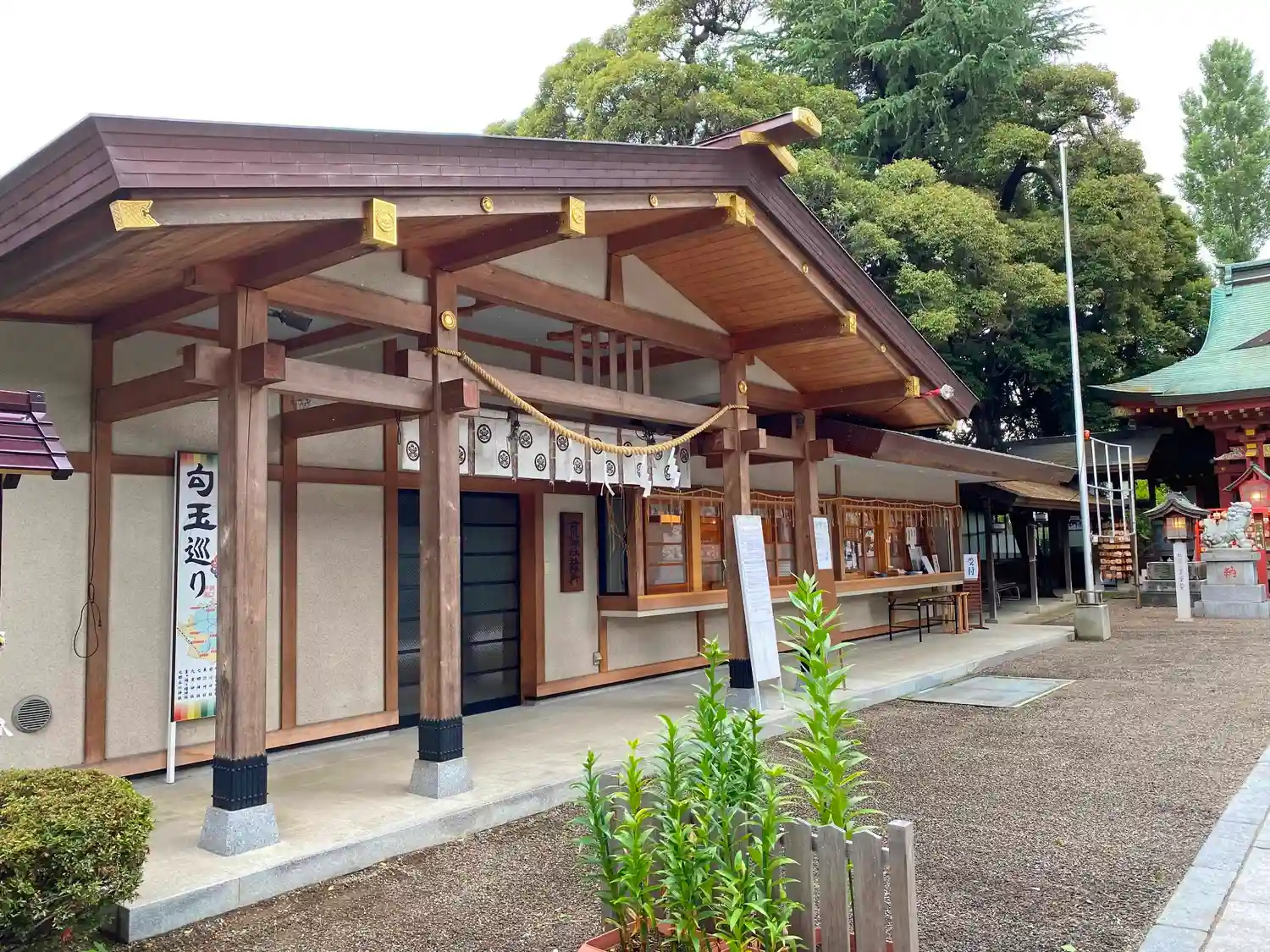 参道左側にある<社務所・授与所>。御朱印はこちら。