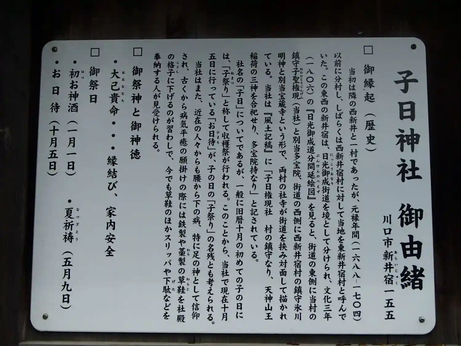 楽しみ方新井宿 子日神社の御由緒・歴史