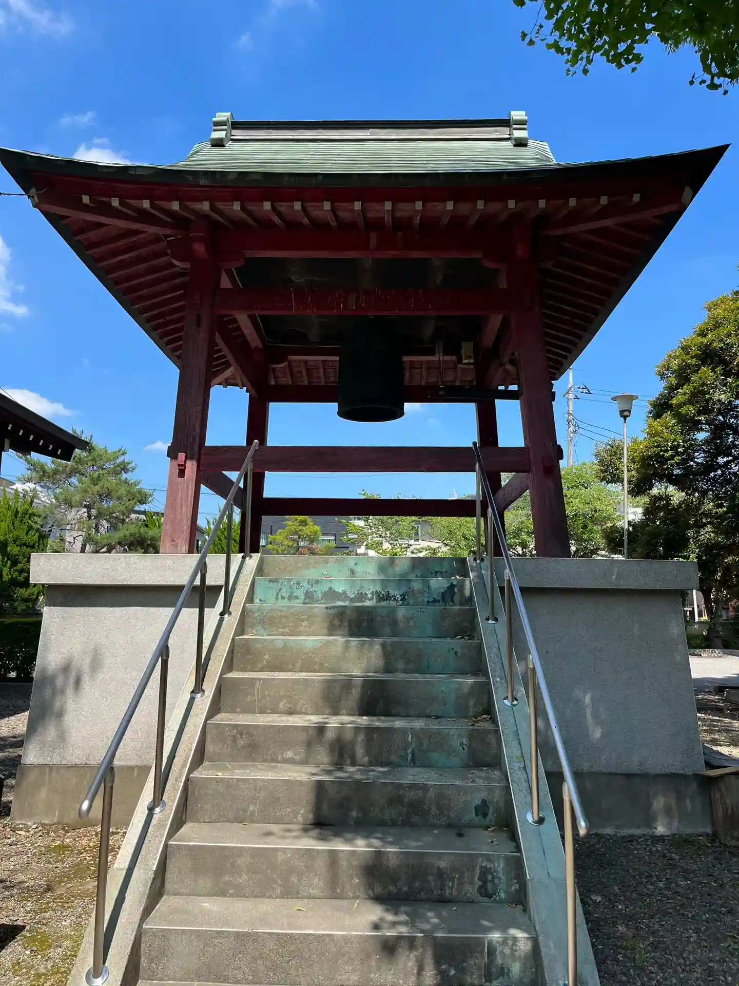 石段は正面に続いていないので左手に回ってください