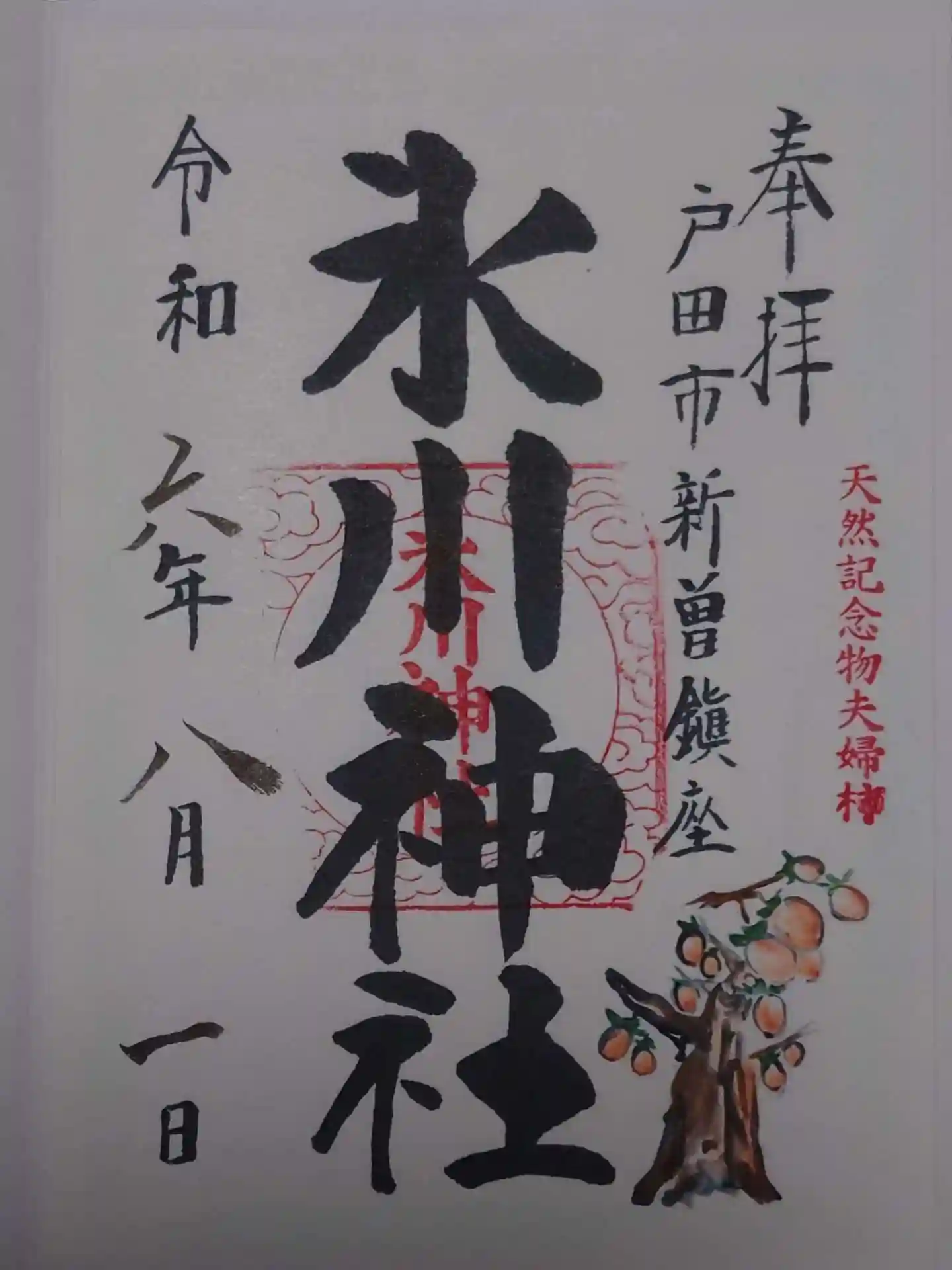 戸田 氷川神社 御朱印頂きました。とても温かい対応して頂きました。夫婦柿も有名です。