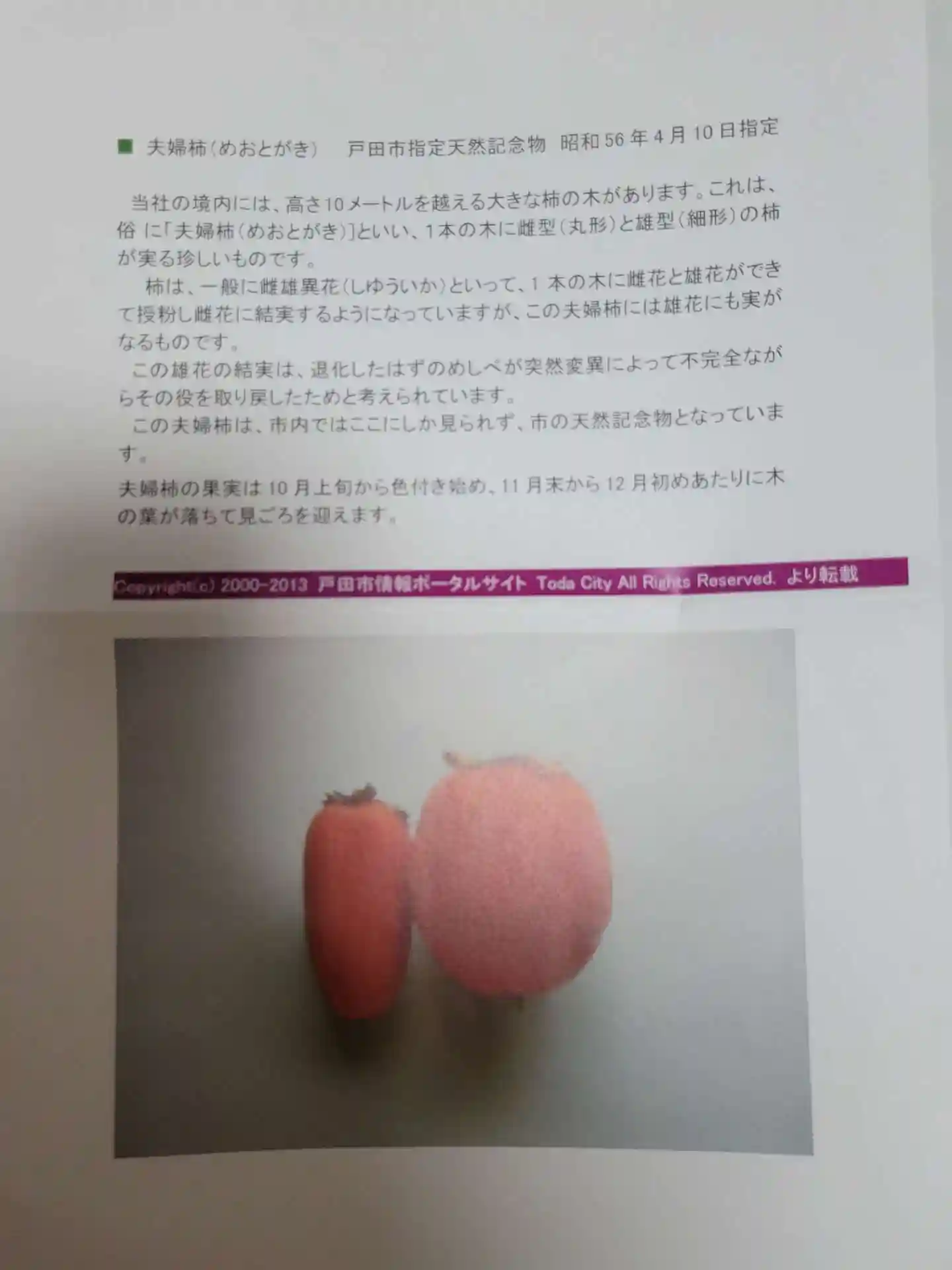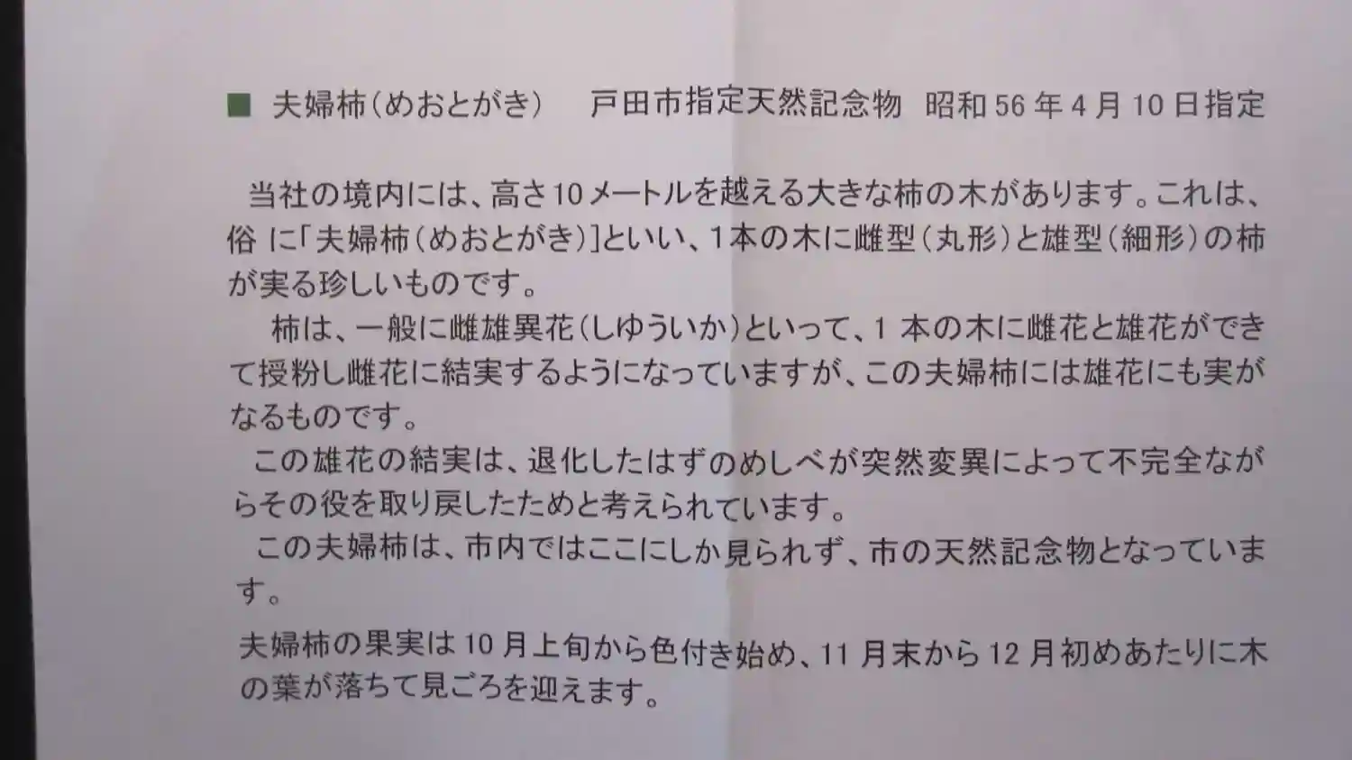 こちらには雄花にも実がなる、珍しい夫婦柿があ…