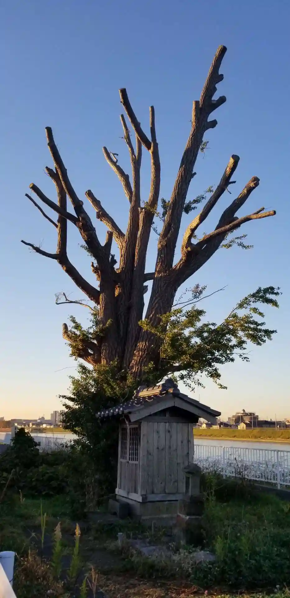 もう少し歩くと銀杏の下の祠に到着。