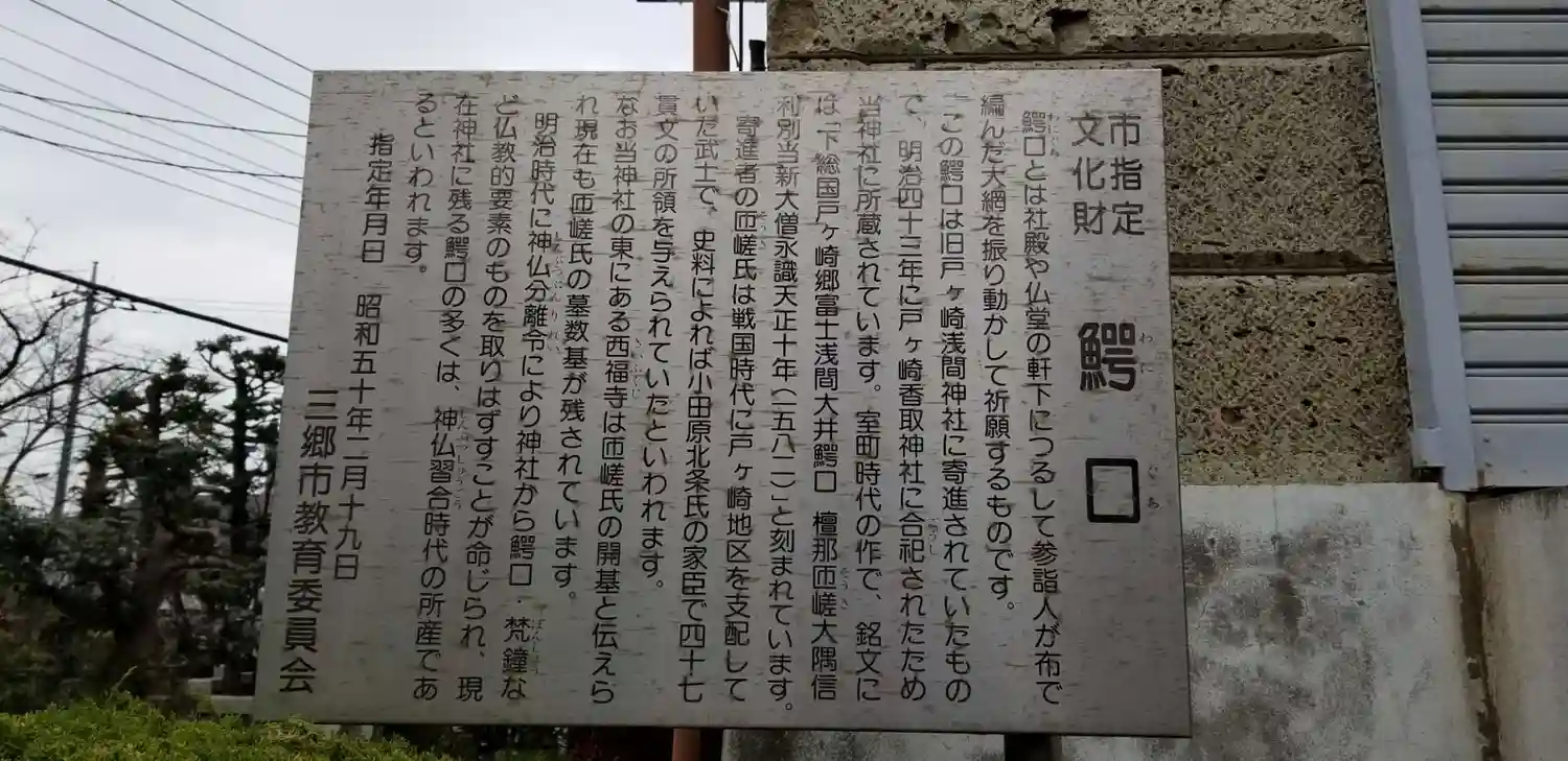 市指定文化財「鰐口」案内板