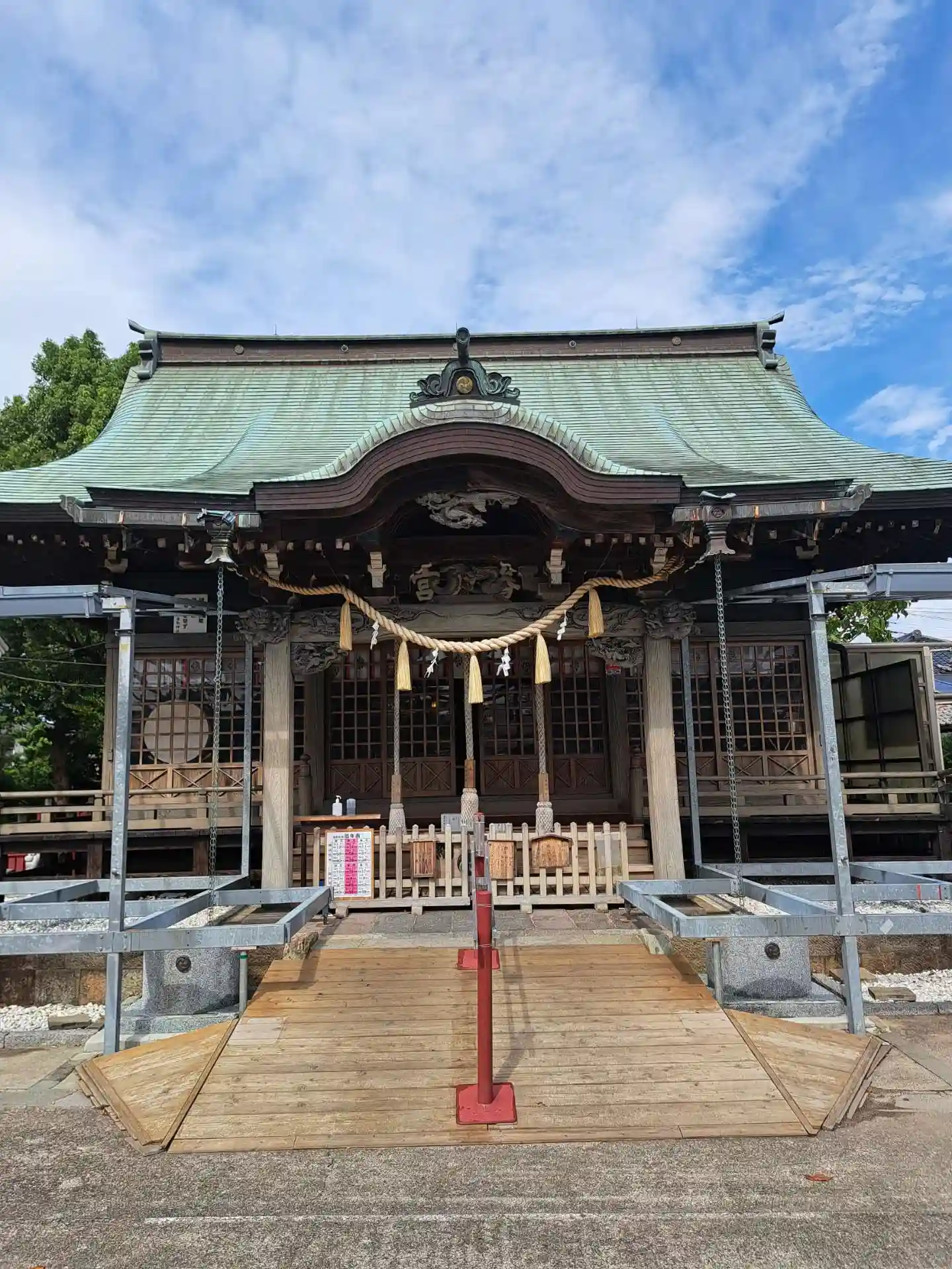 拝殿前に日除けのようなものがありました