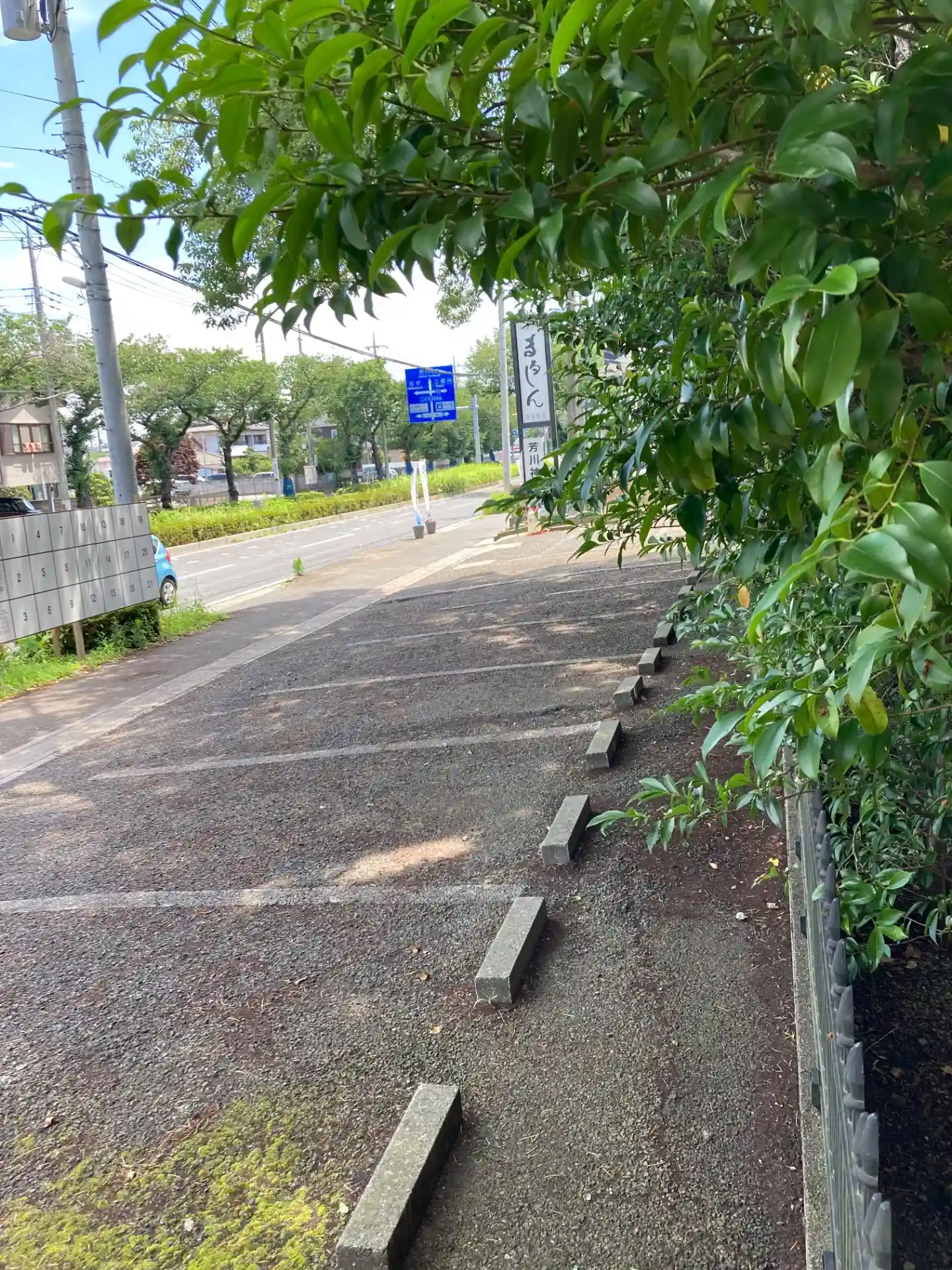 正面の鳥居の横には駐車場への通路有り