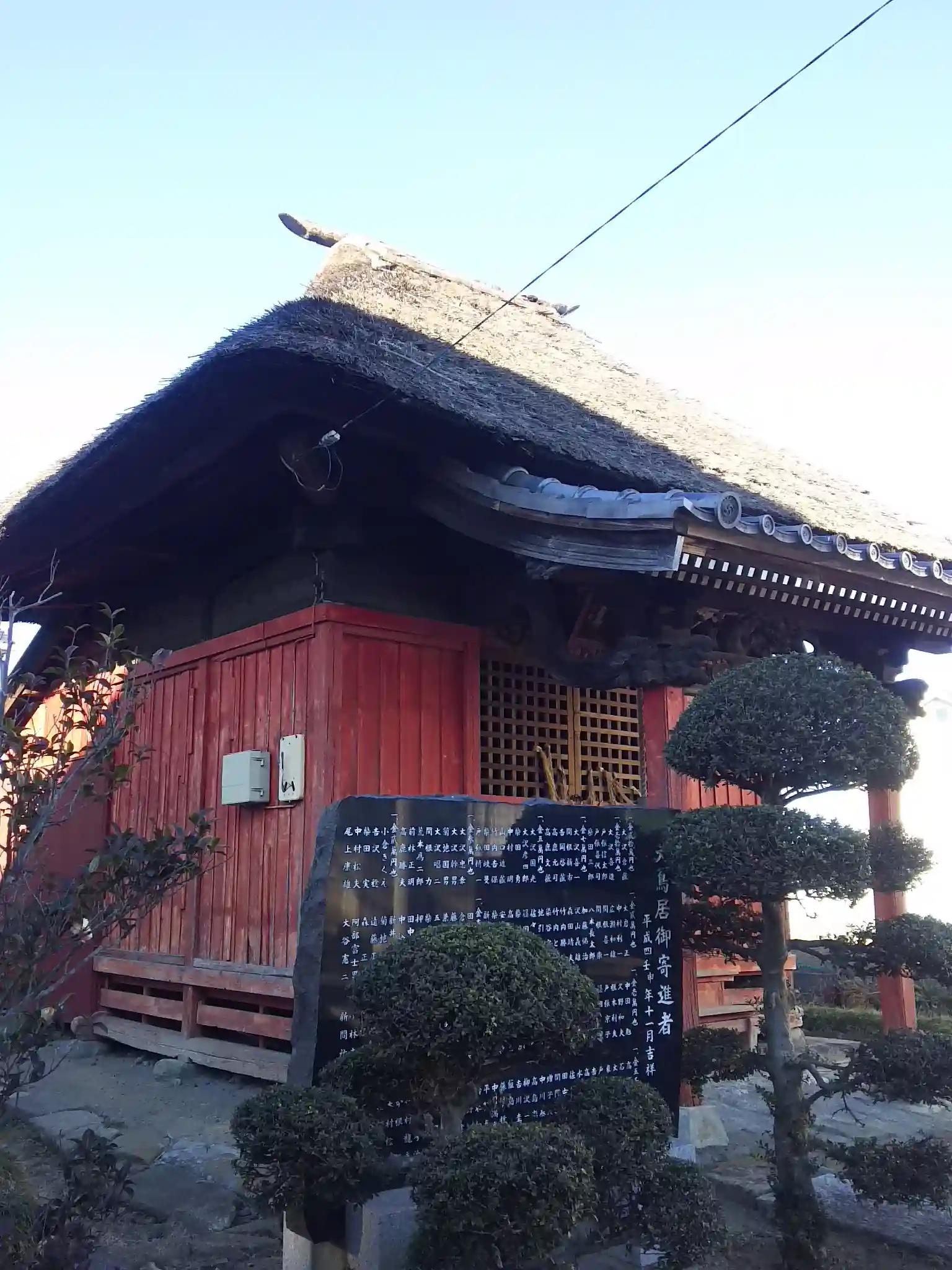 茅葺屋根の可愛らしい神社。
