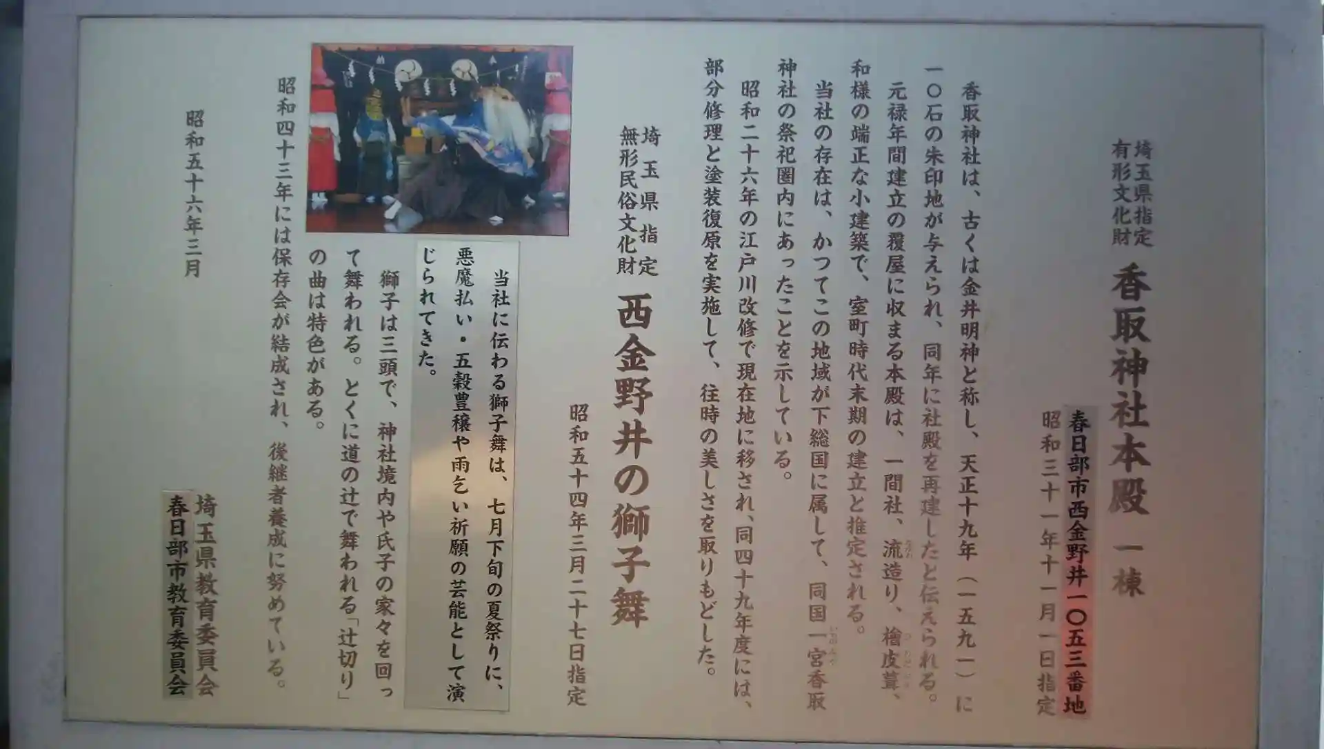 二回目の参拝です。春日部の古社で、本殿は県有形文化財とのことです。現在の境内の外側に富士塚(のような?)が見られます。
