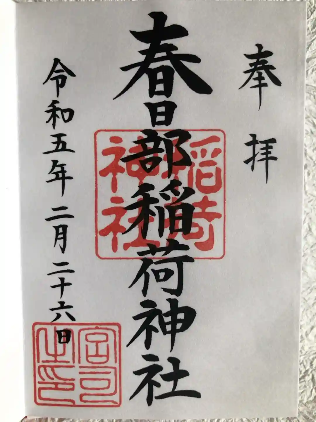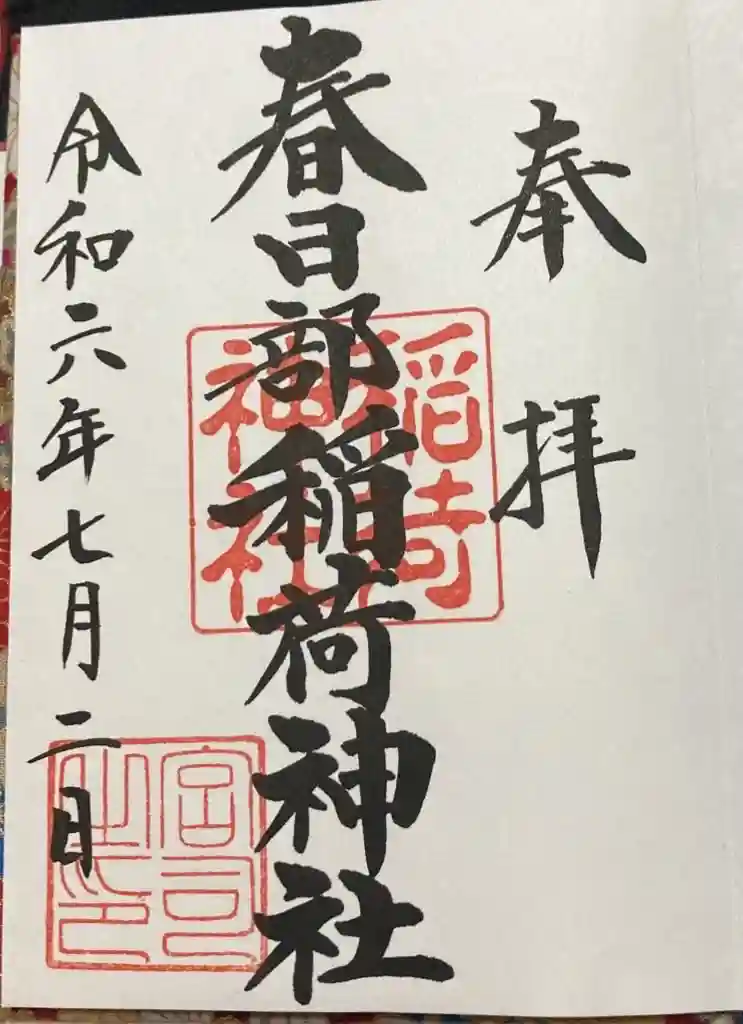 埼玉県春日部市にある春日部八幡神社内の春日部稲荷神社を参拝。八幡神社の御朱印といっしょに頂きました。