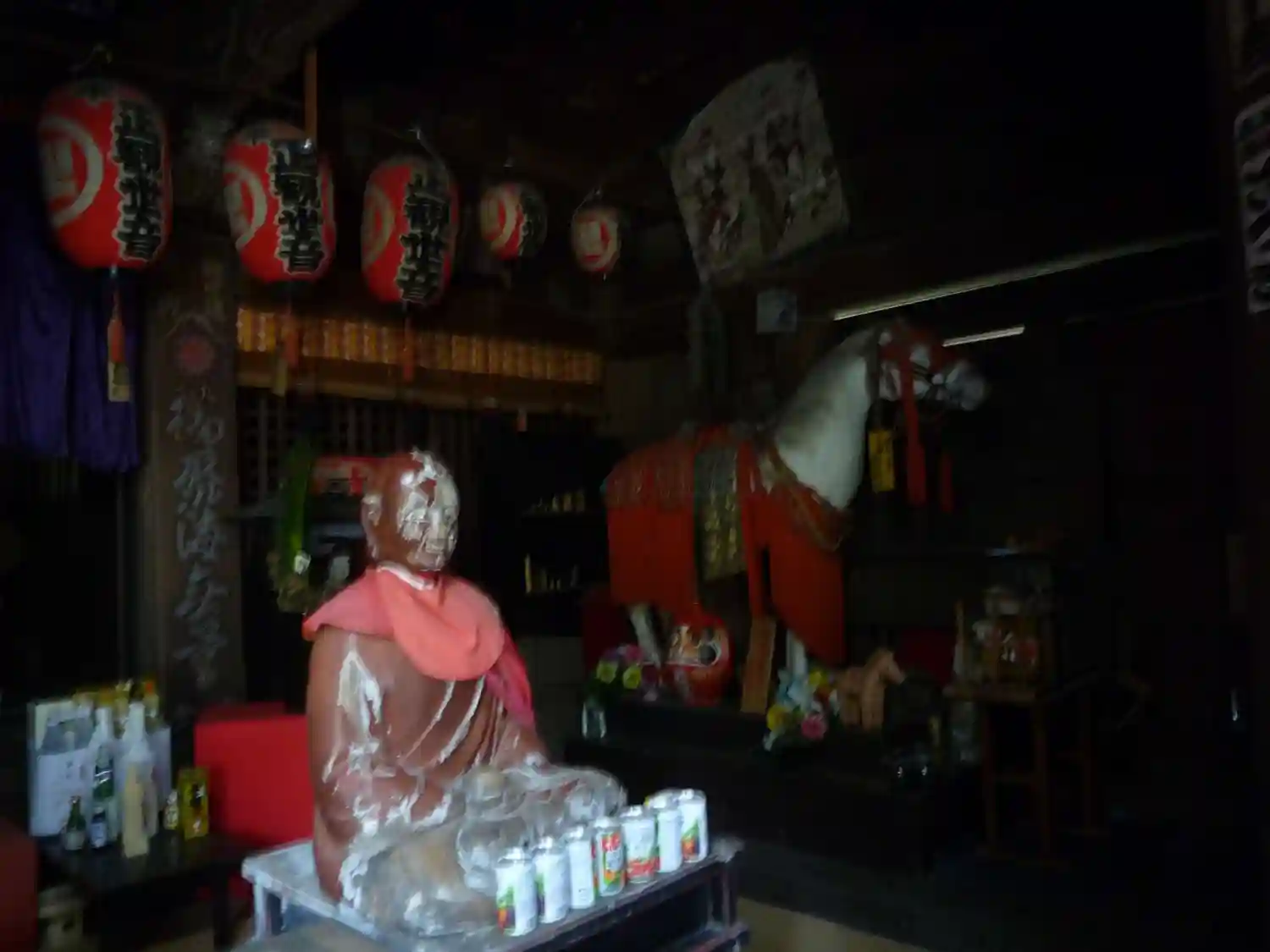 なぜか本堂の正面にお賽銭の場所がなく、裏側に回るとお賽銭がならべてありました