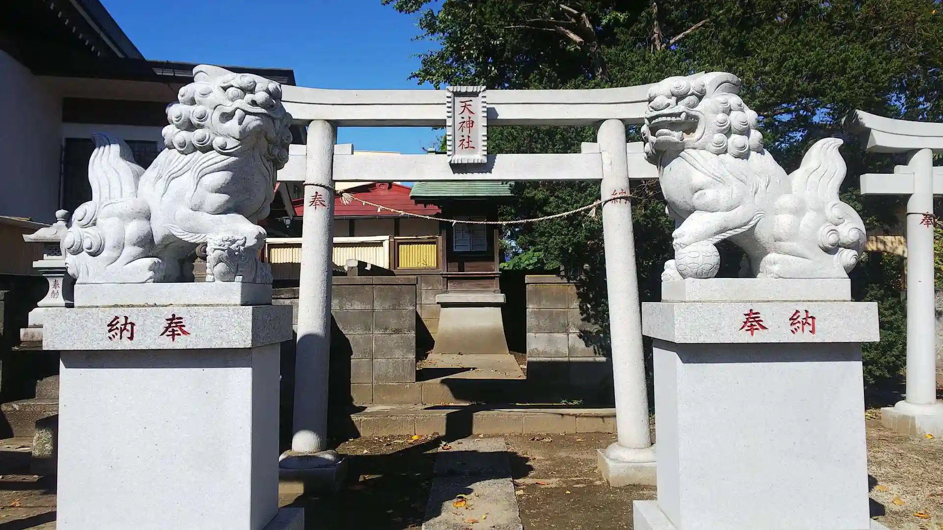 圓福寺と隣接して鎮座しています。創建年代は不詳。御祭神は経津主神(ふつぬしのかみ)です。赤いふちどりの狛犬さんが印象的でした。