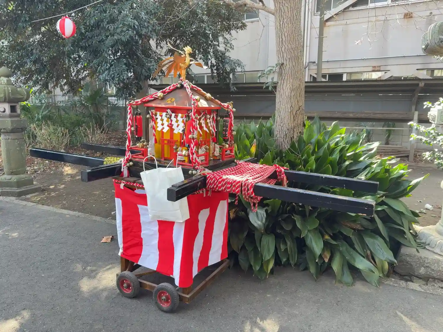 大きい神輿は東側の道路のどこかに置かれていたようです。
