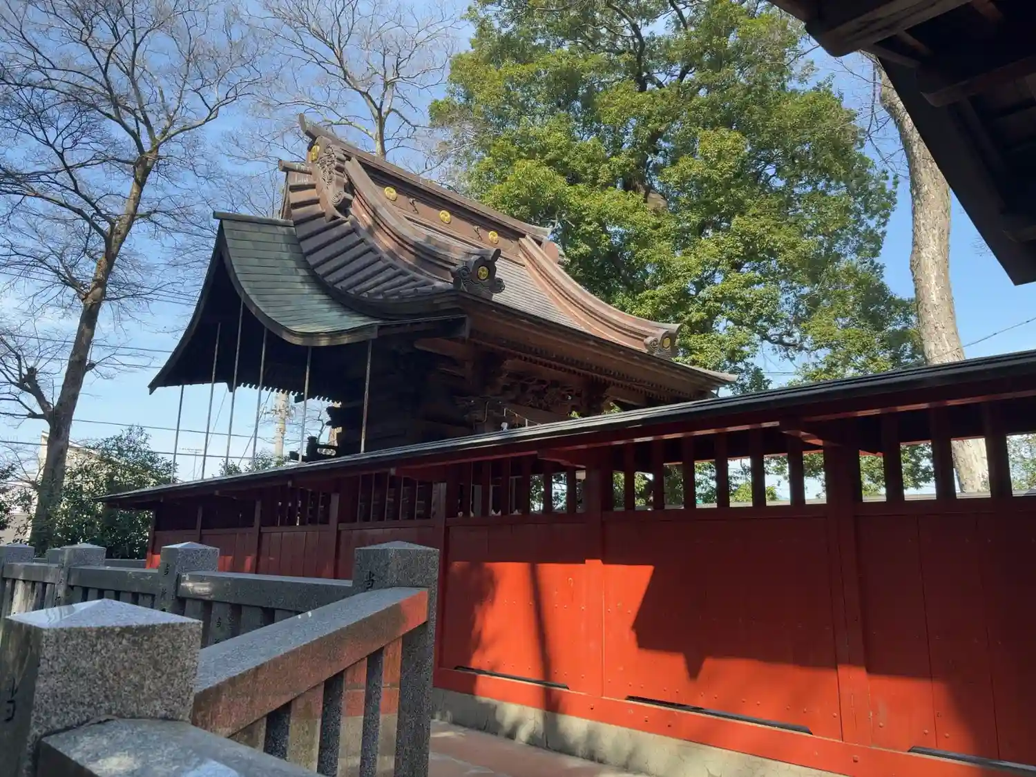 外側からだと本殿は屋根くらいしか見えないです。