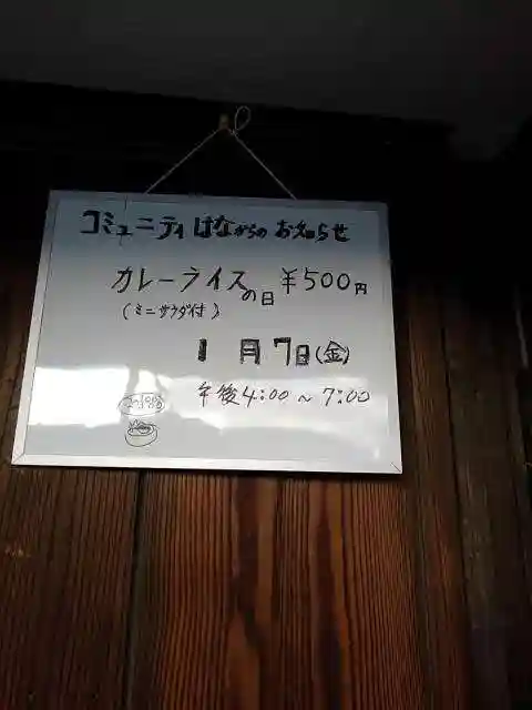 札所の窓口の扉に、コミュニティ喫茶店なるものがあると