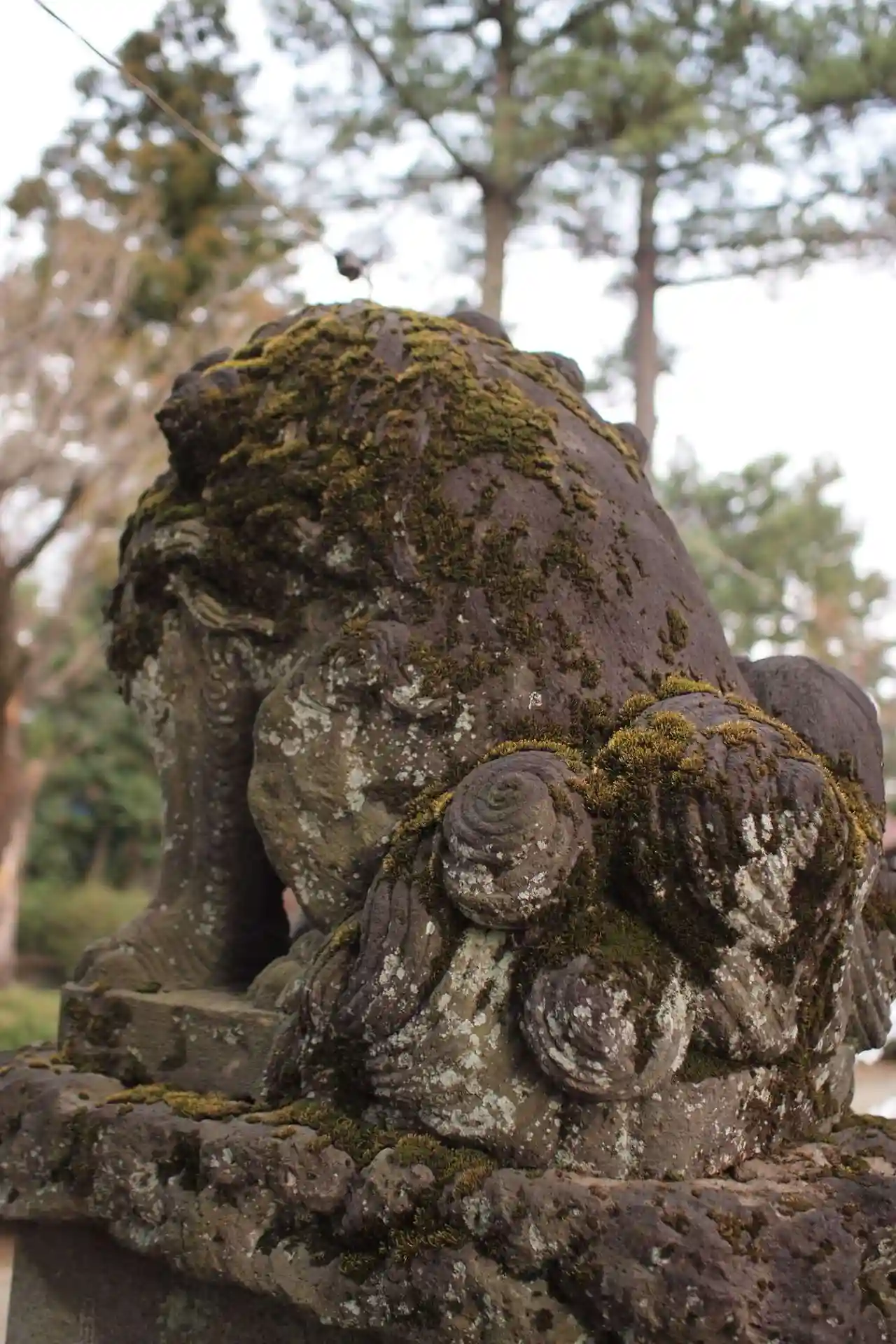 狛犬さんはかなりのベテランな流れ尾タイプ。