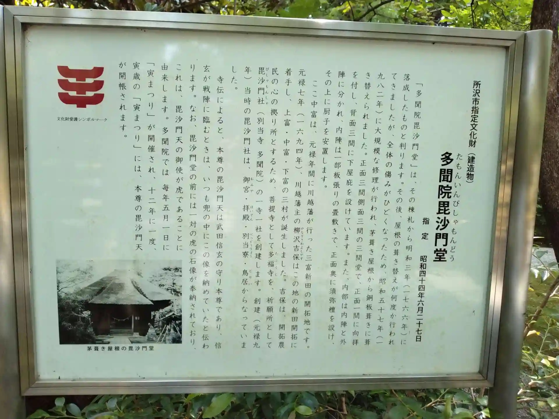 毘沙門堂の由緒書きです。