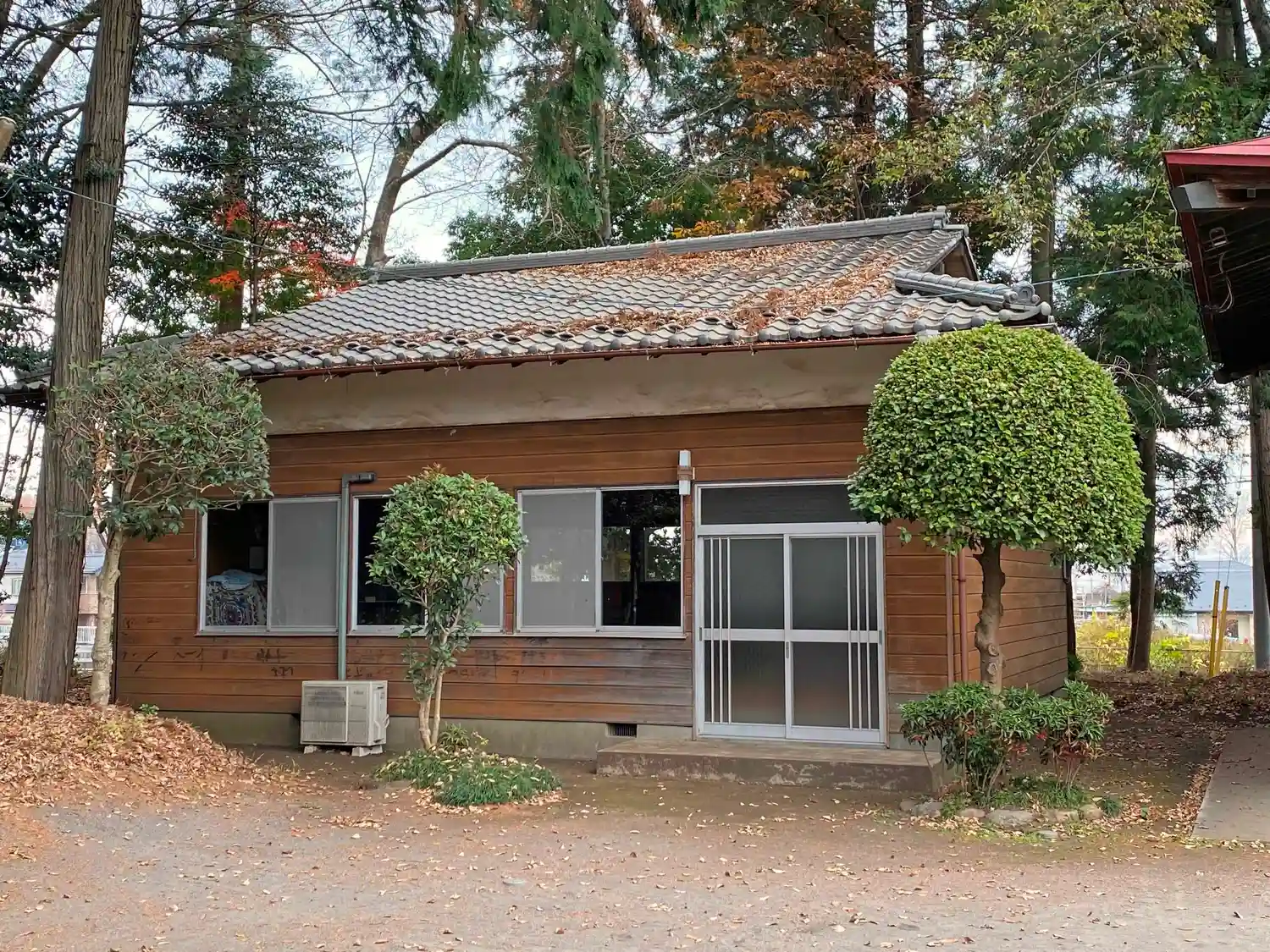 元来た道を少し戻って、広場にある<社務所>。