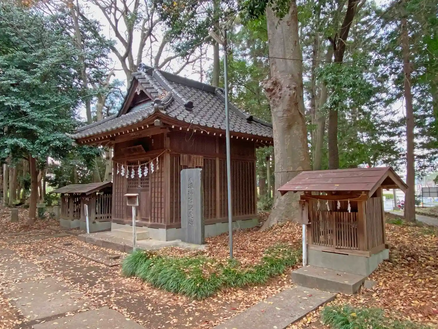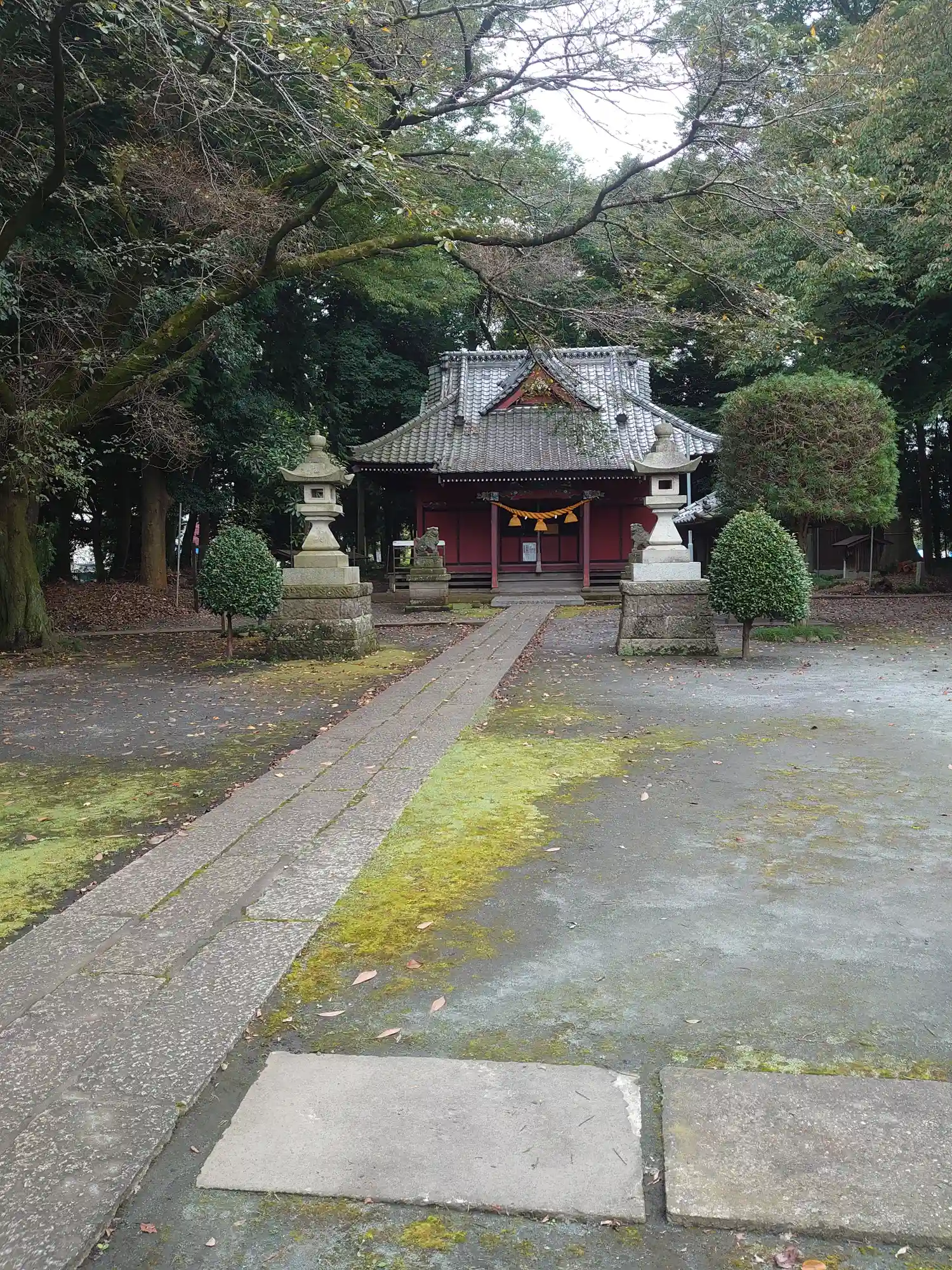 <拝殿>遠景。この見える範囲だけでも旧村社格の広さだが、写真外の左側、右側、奥にもちょっとした林があって境内地となっている。