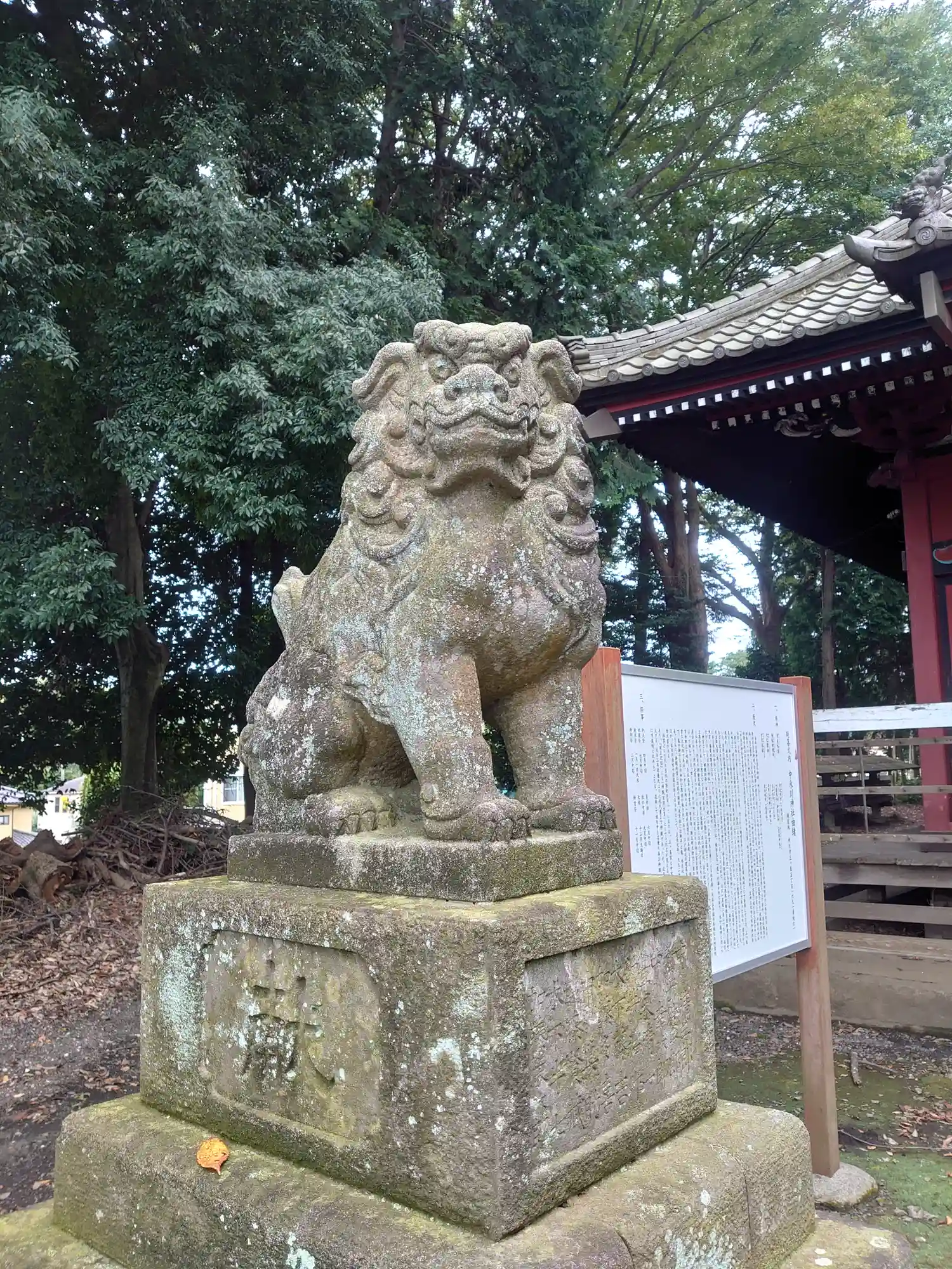 拝殿前、参道左側の<狛犬>。年季はそこそこ。