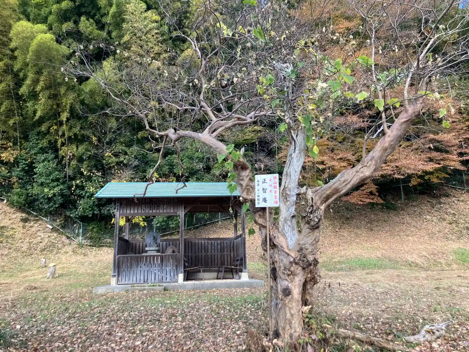 | 狭山三十三観音霊場 第4番 | 仏さま:十一面観音 御詠歌: 良き事を 朝な夕なに 正智庵 作り罪も 露と消ゆらん |