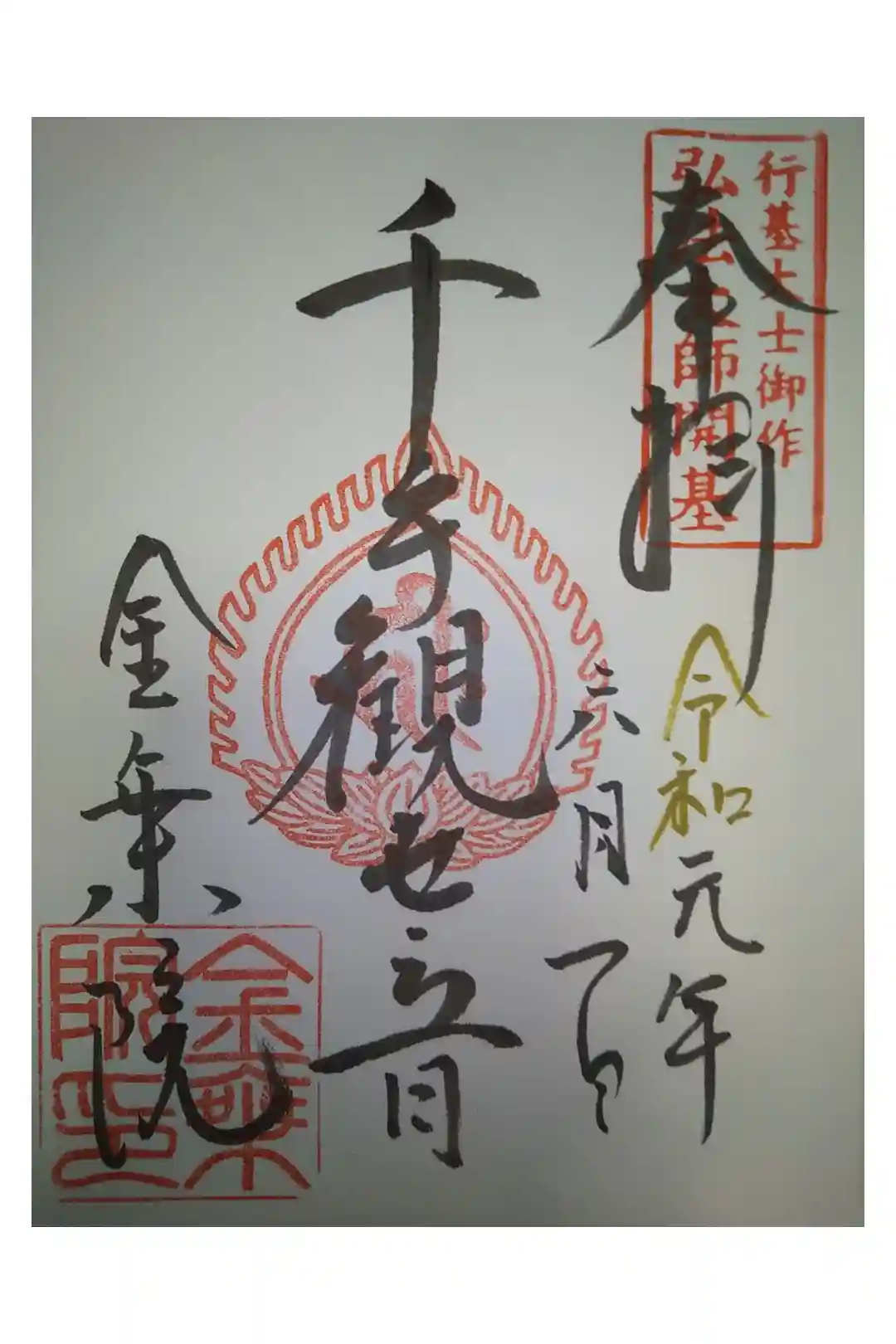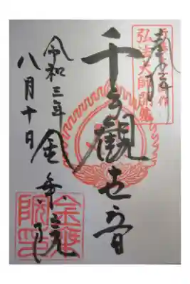 寺務所カウンターにあった御朱印(千手観音さま)見本